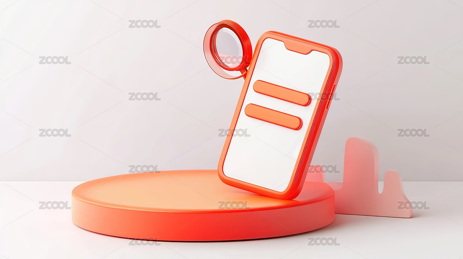 粉色背景下的手机和放大镜