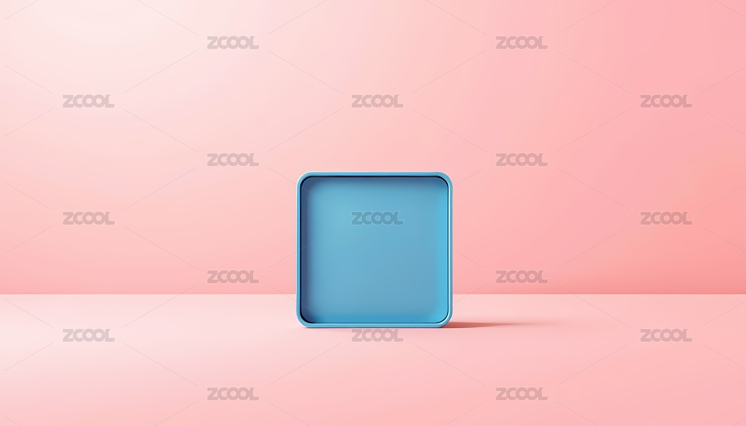 粉色背景上的蓝色方形托盘