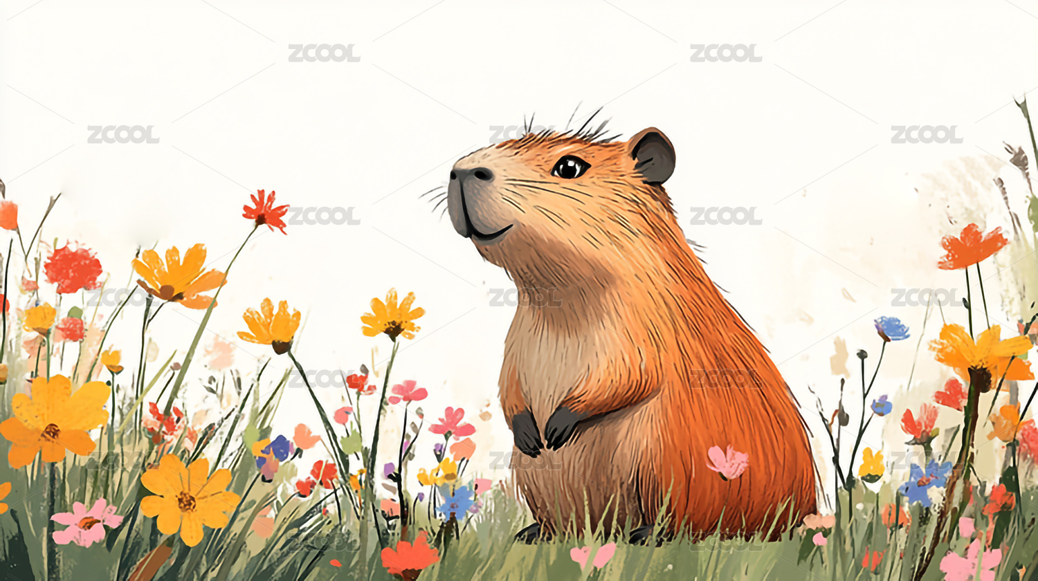 特写,肖像,自然,野生动物,插画,动物,面部,棕色,卡通风格,海象