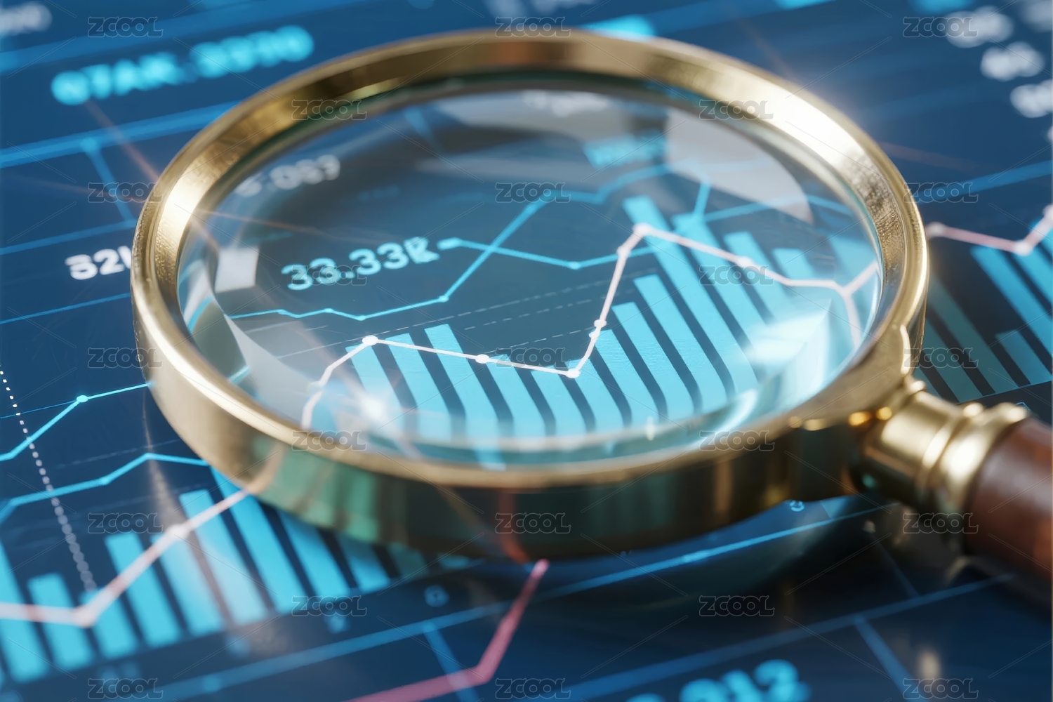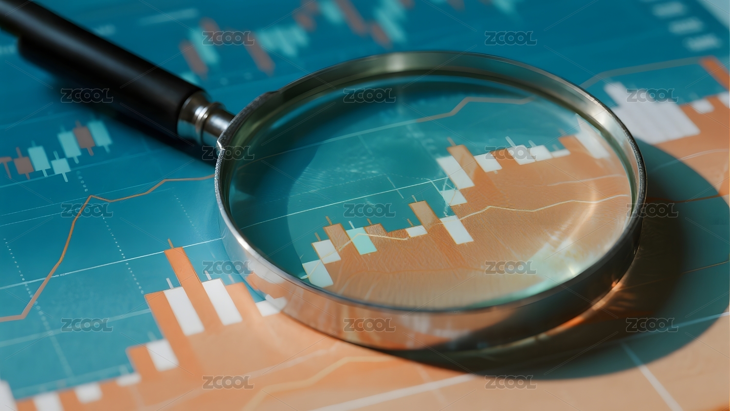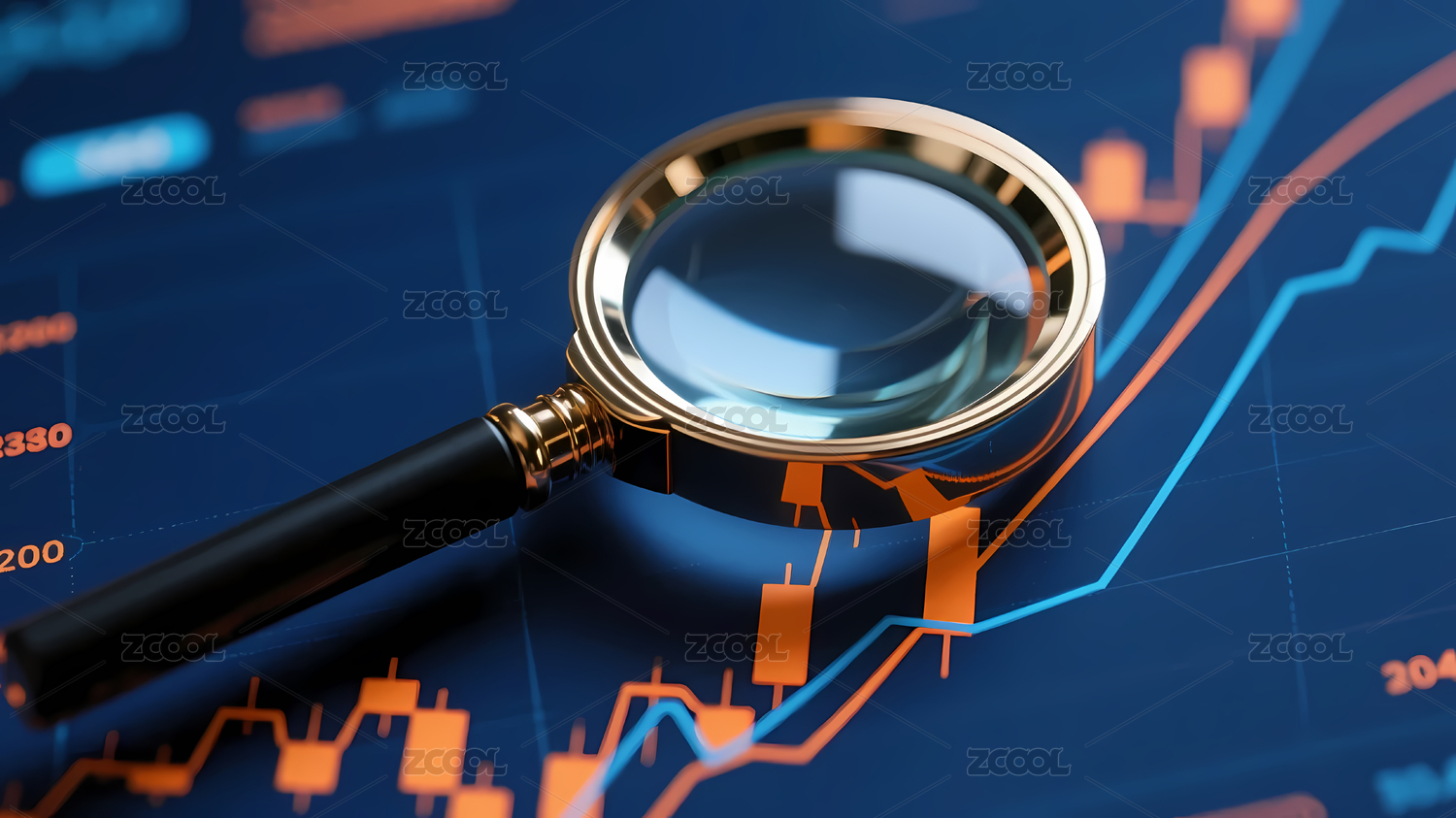 放大镜聚焦金融图表场景