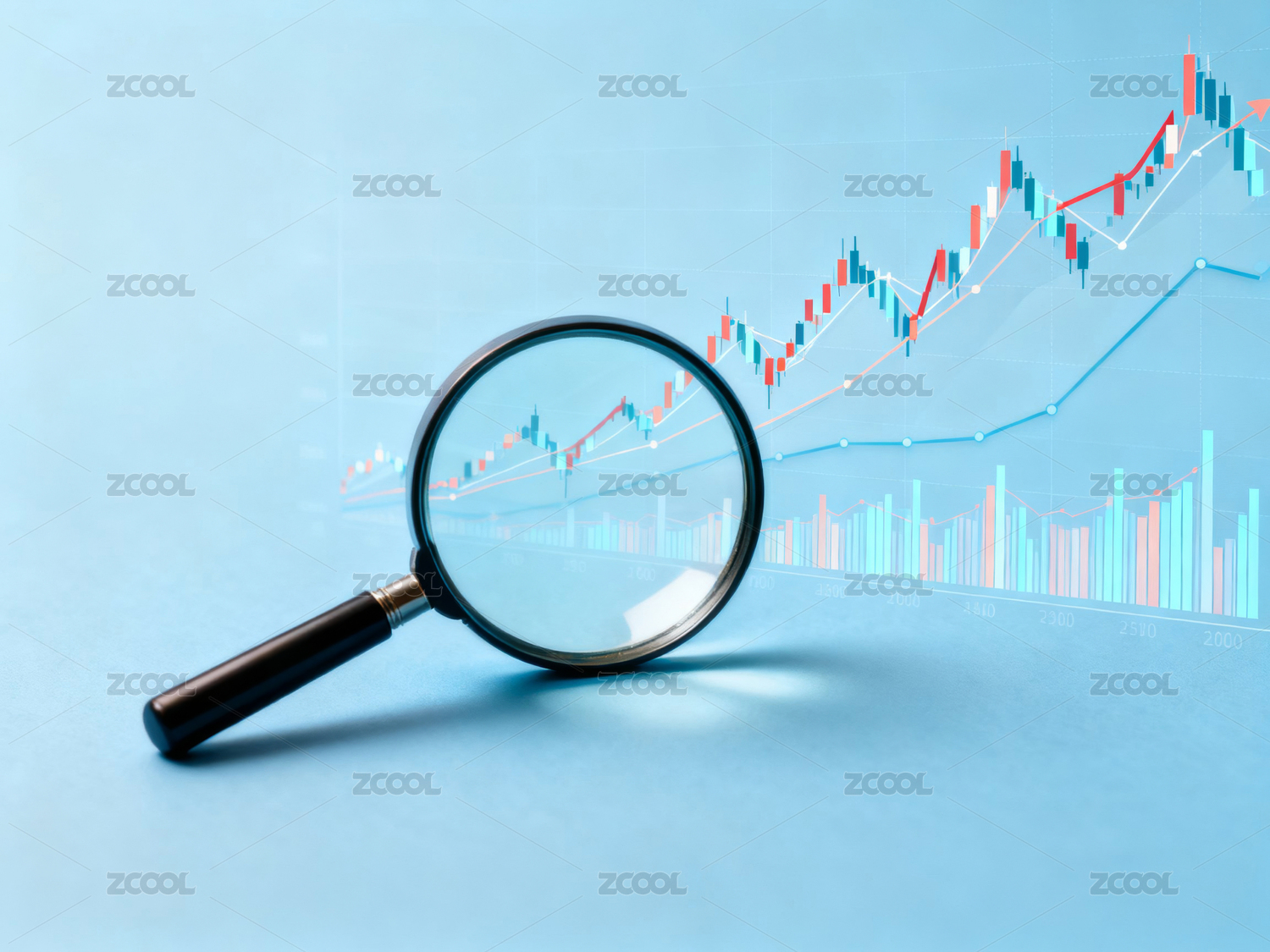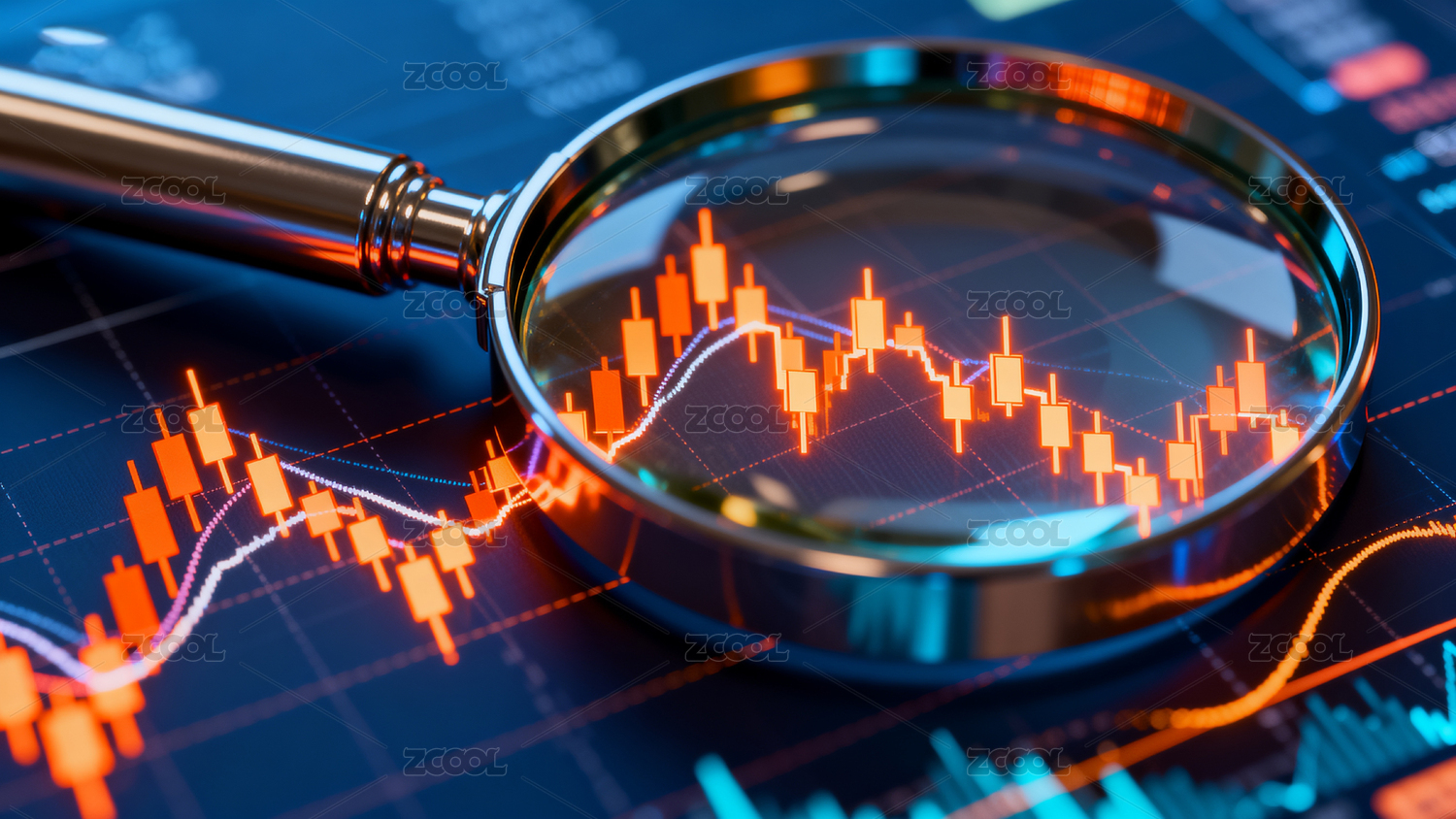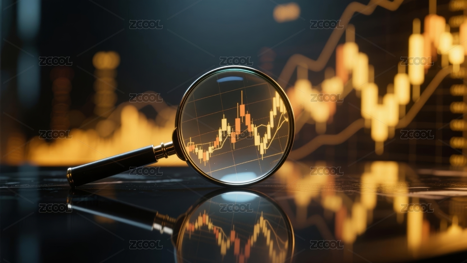 放大镜聚焦金融图表场景