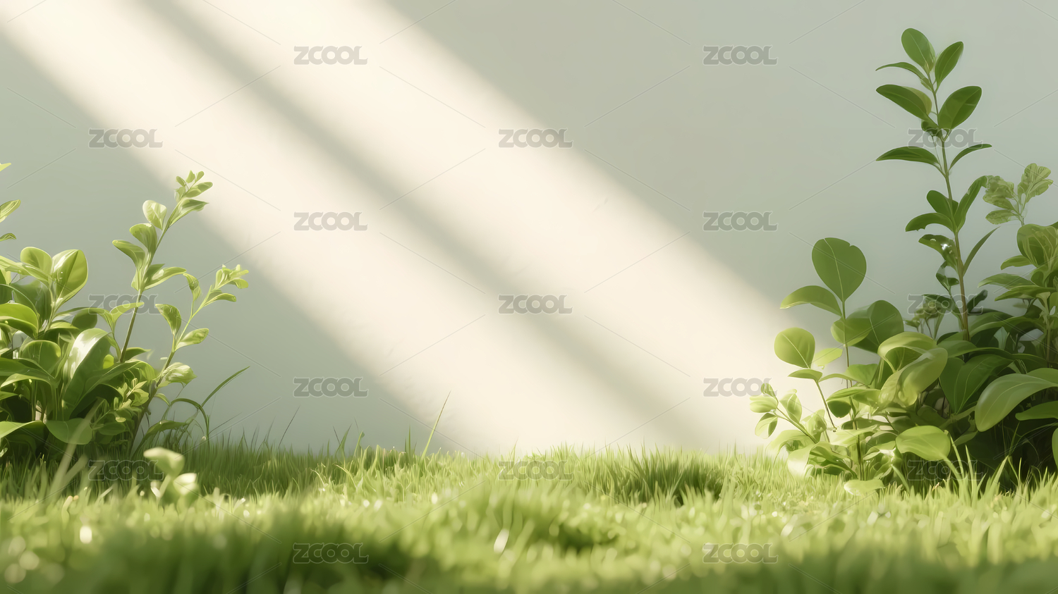 柔和光影下的绿草与植物群