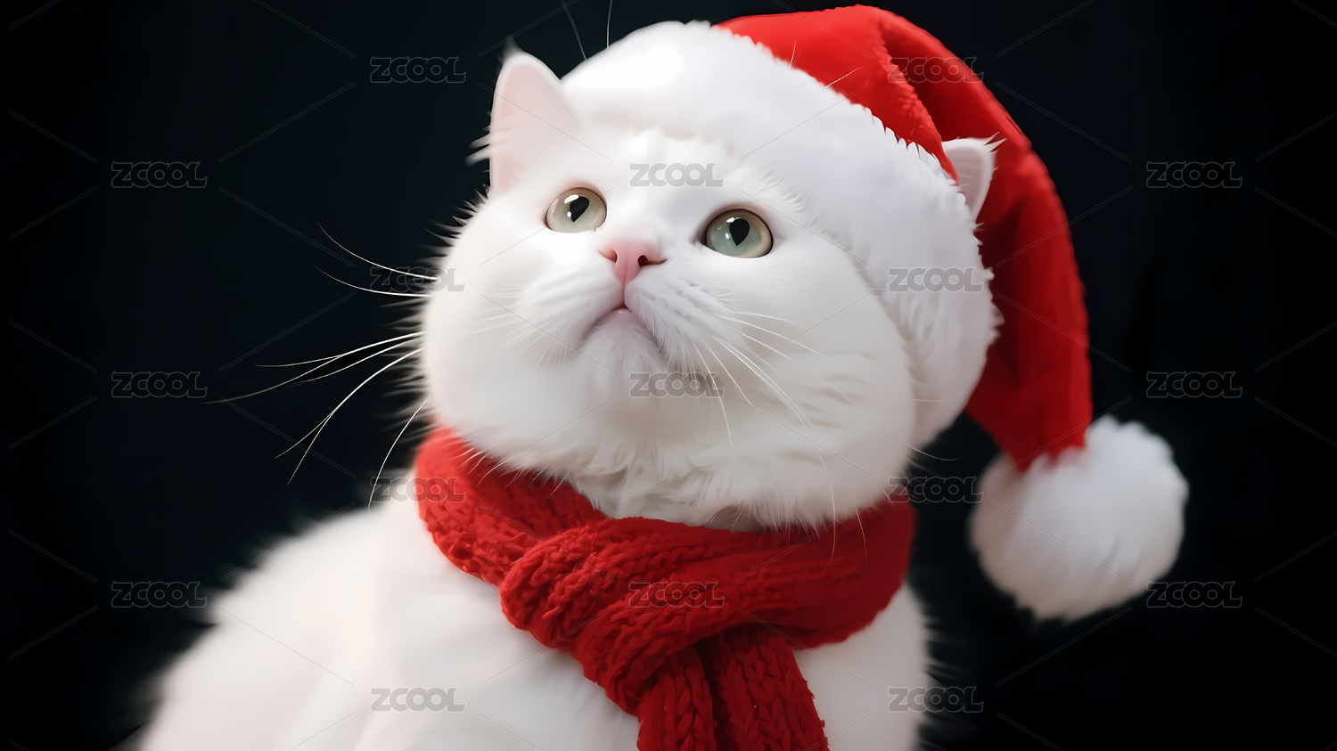 圣诞帽白猫黑背景