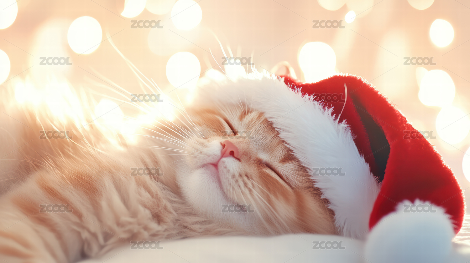 猫咪,圣诞帽,节日气氛,宠物,可爱,温馨,动物,灯光,节日,庆祝