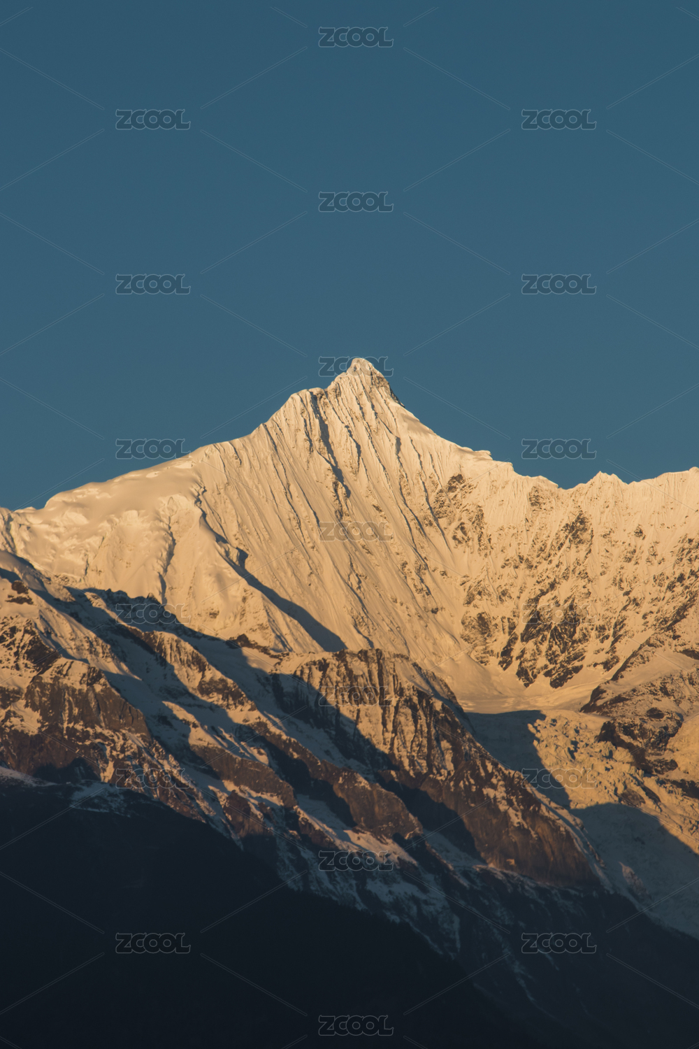 云南德钦梅里雪山卡瓦格博山峰与蓝天