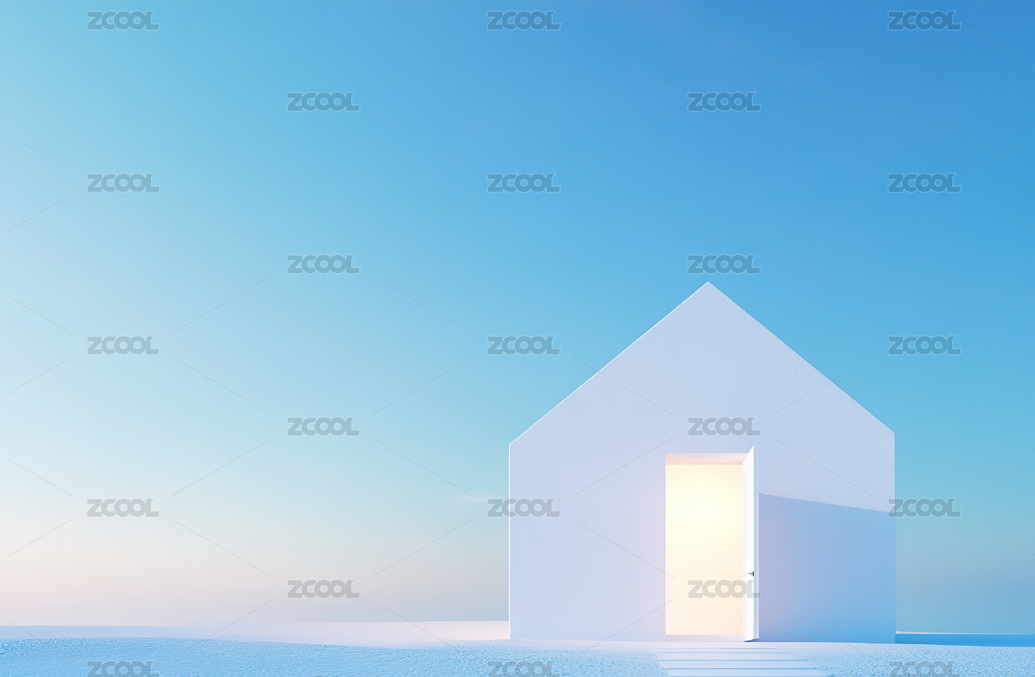 雪地中的白色小屋
