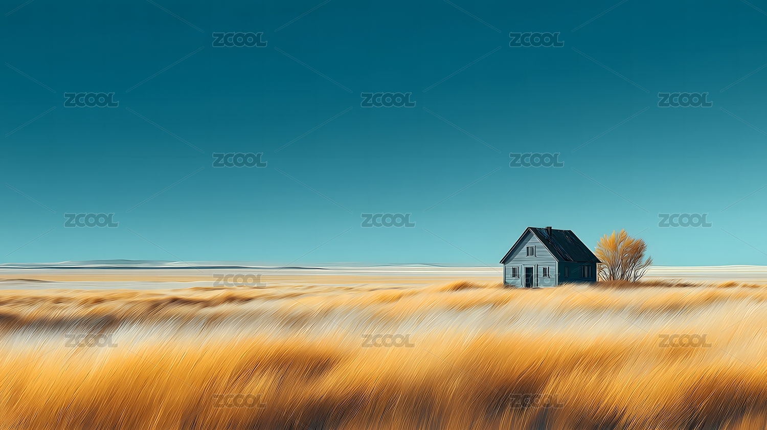 广袤的平原上,一座孤独的小屋,营造出宁静