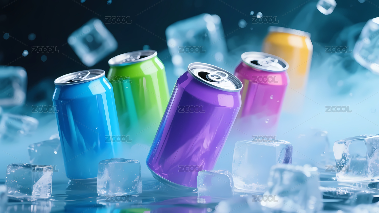 绿色,黄色,白色,饮料,冰块,罐装,冷饮,夏季,清爽,铝罐