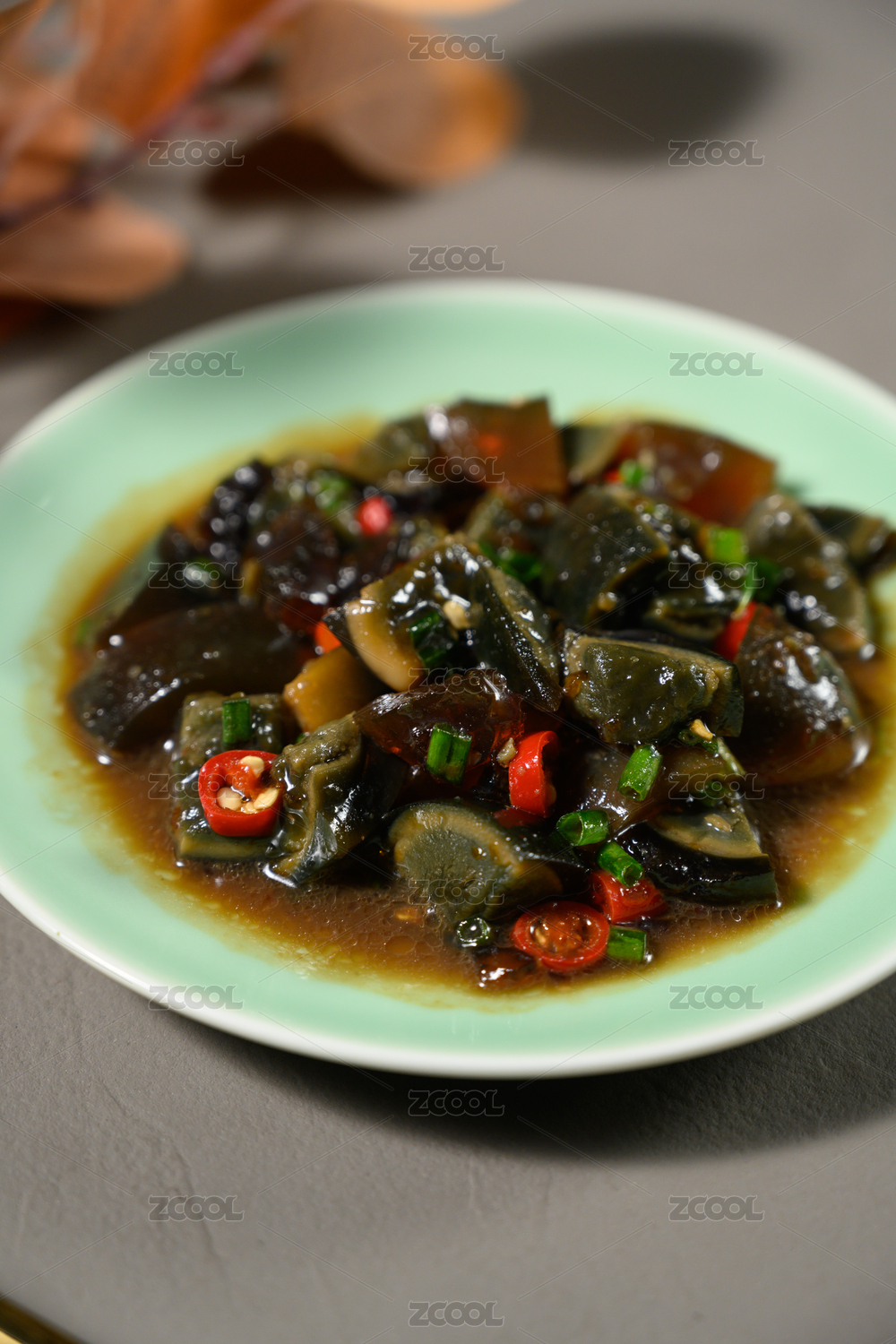 桌面上的盘子里的美味可口的凉拌皮蛋