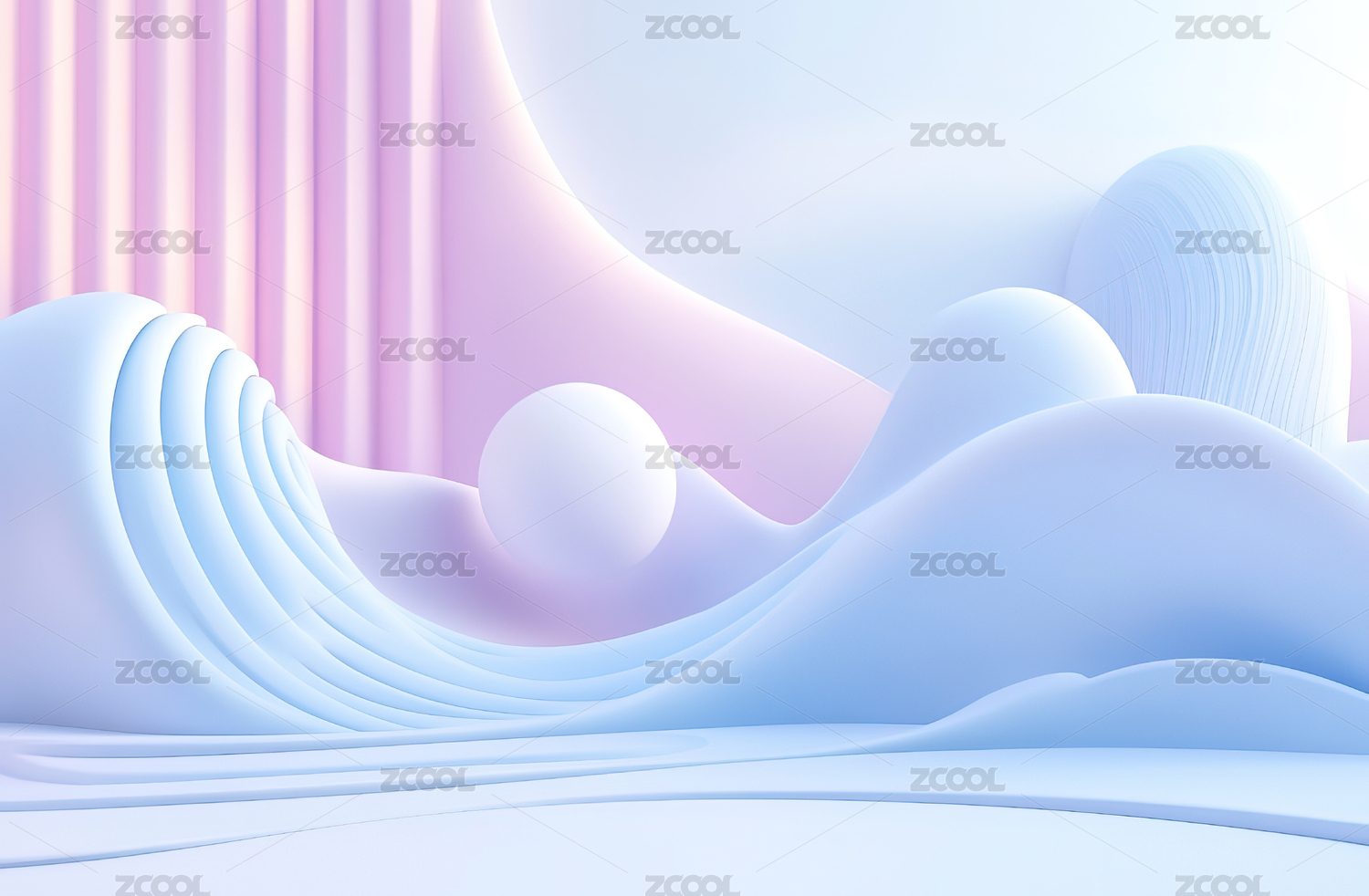 三维渲染,粉色渐变曲面背景