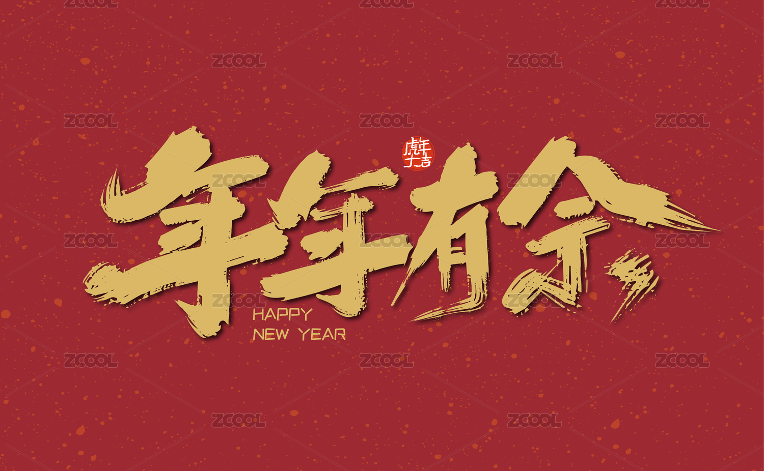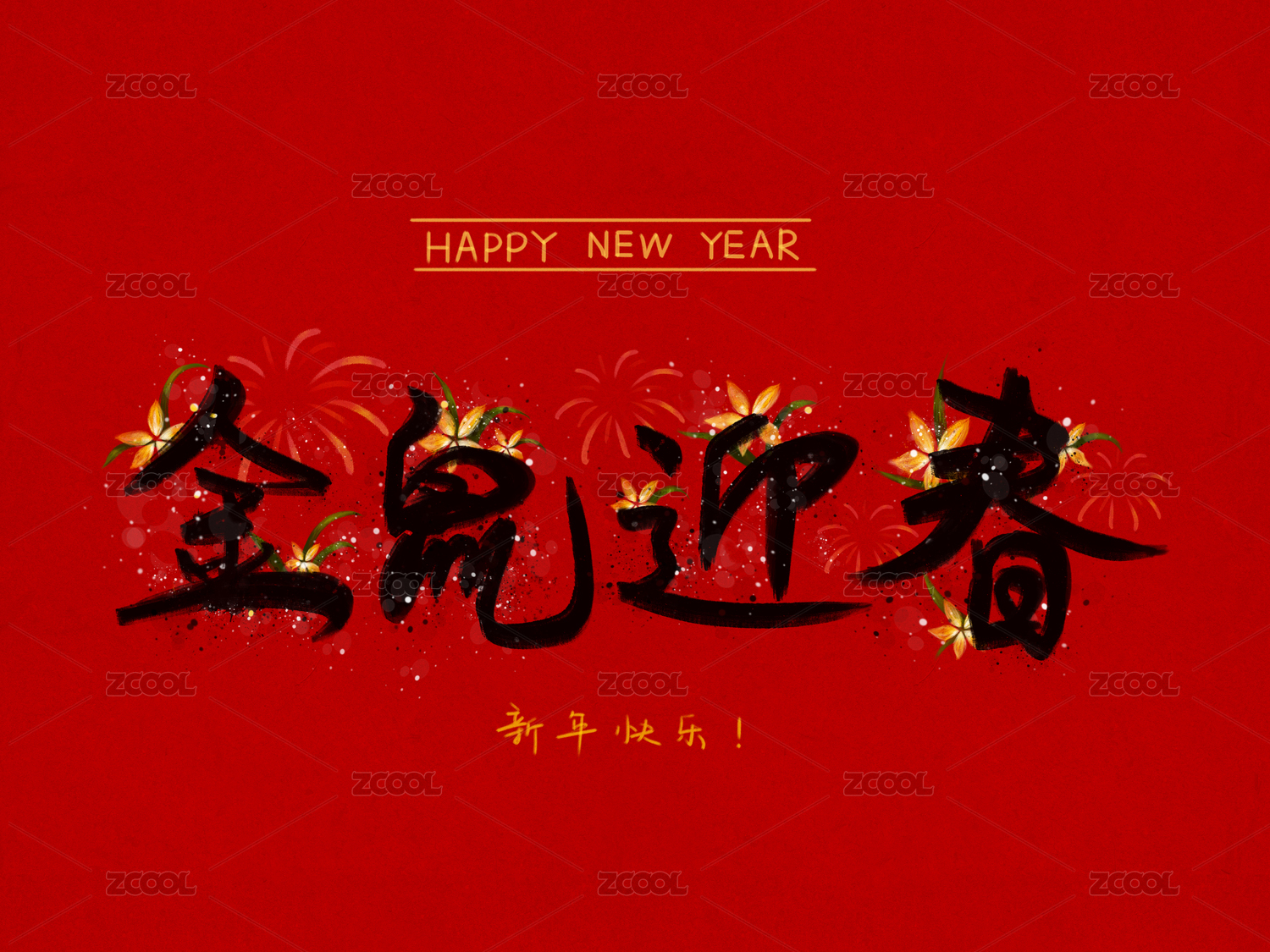 2020年春节红底黑字金色新年手写祝福字