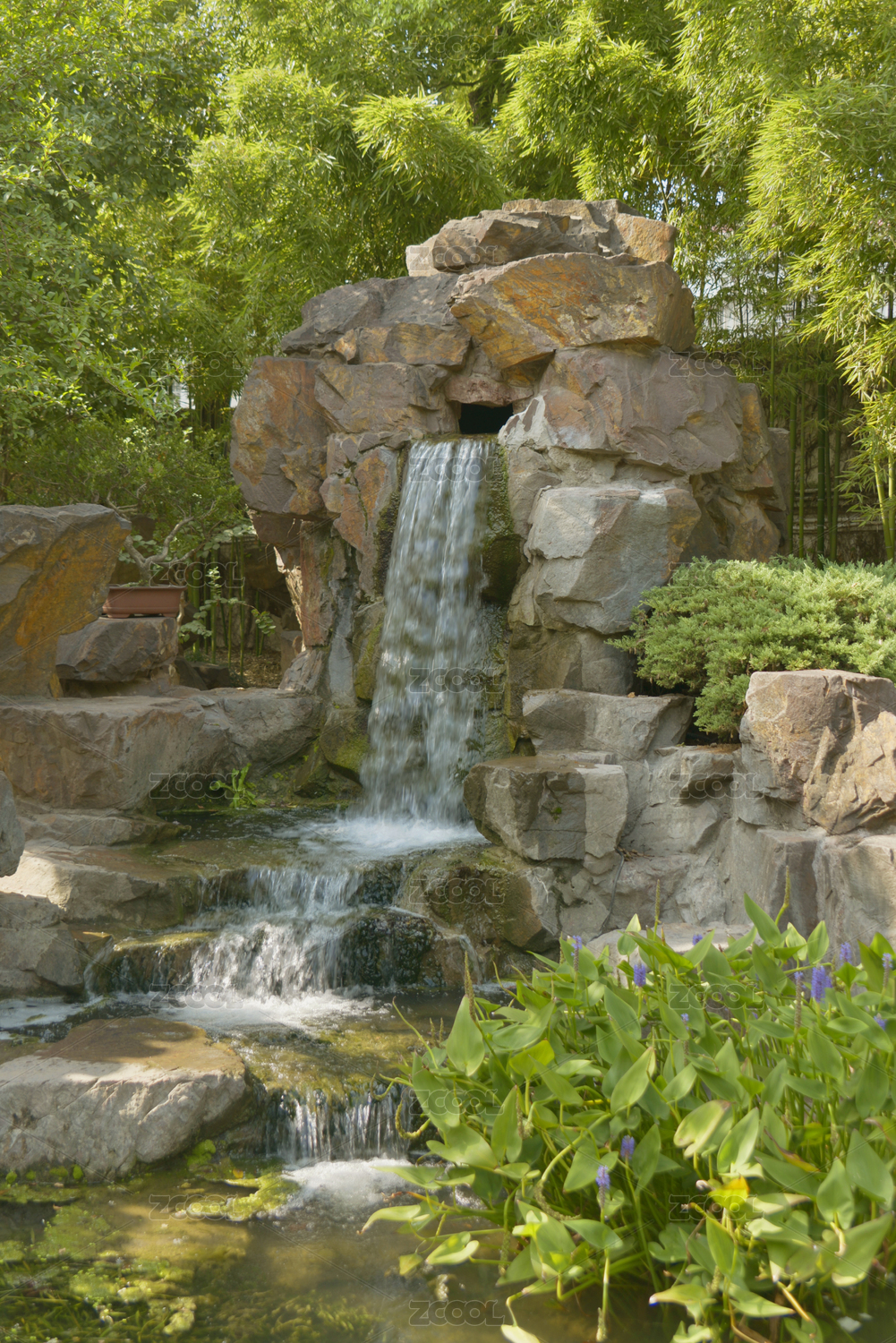 中国上海古猗园盆景园喷泉瀑布水景园林