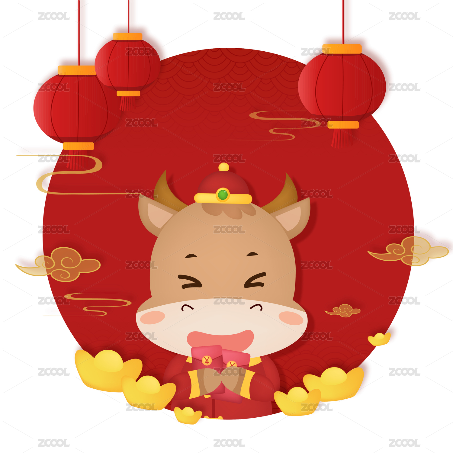 2021,动物,牛年,扁平,扁平化,背景,矢量,矢量图,灯笼,中国风
