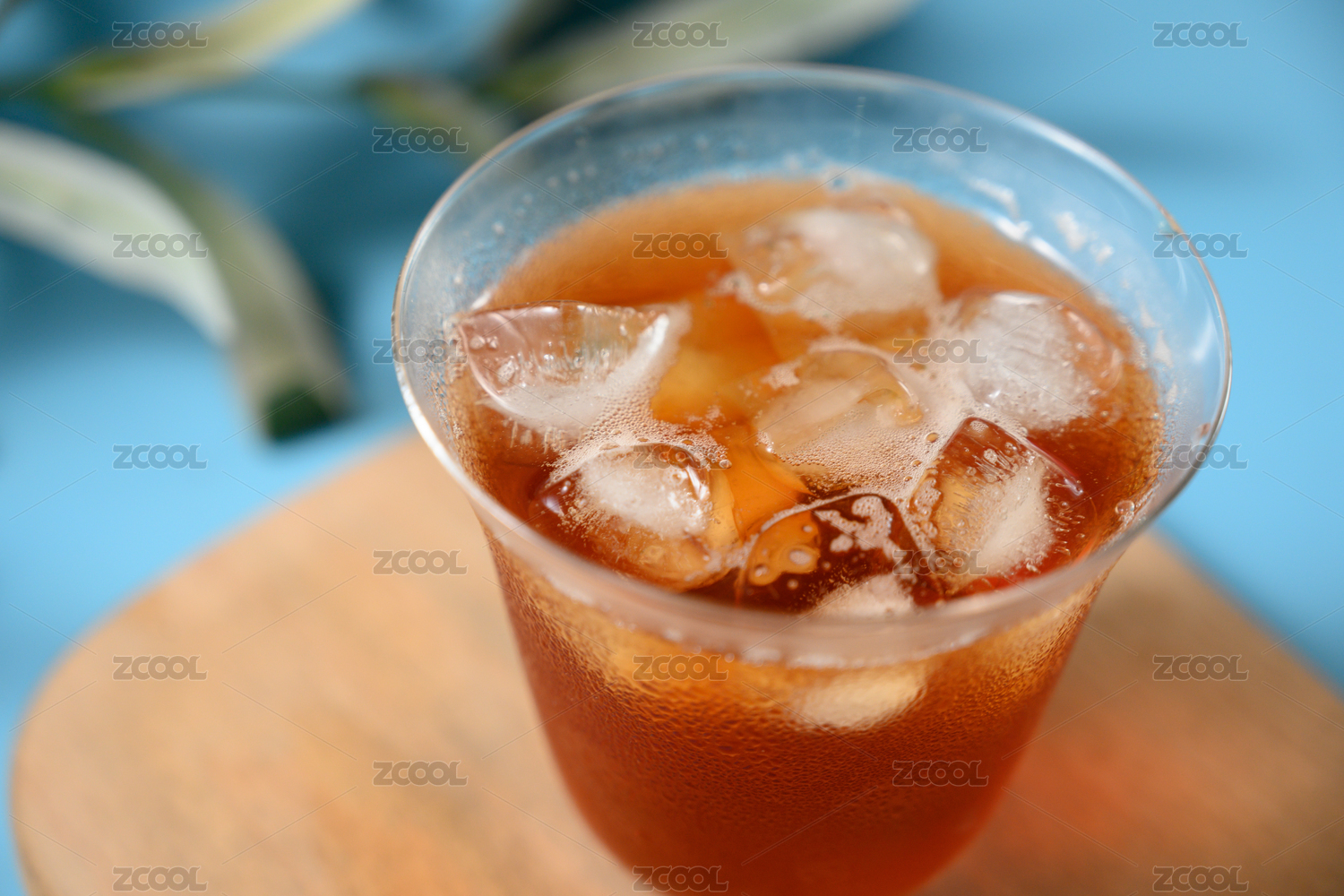 桌面上的杯子里的美味可口的冰蜜桃乌龙茶