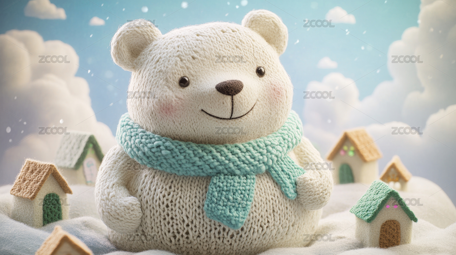 北极熊可爱唯美野生动物3D卡通插画壁纸