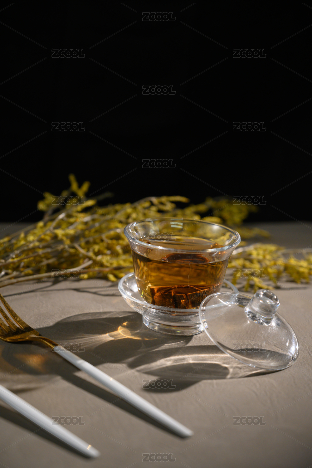 桌面上的杯子里的甘甜可口的茉莉吐珠茶