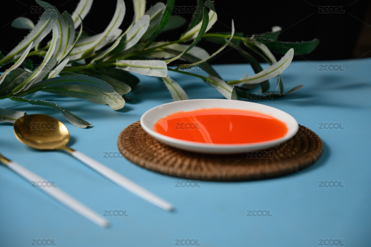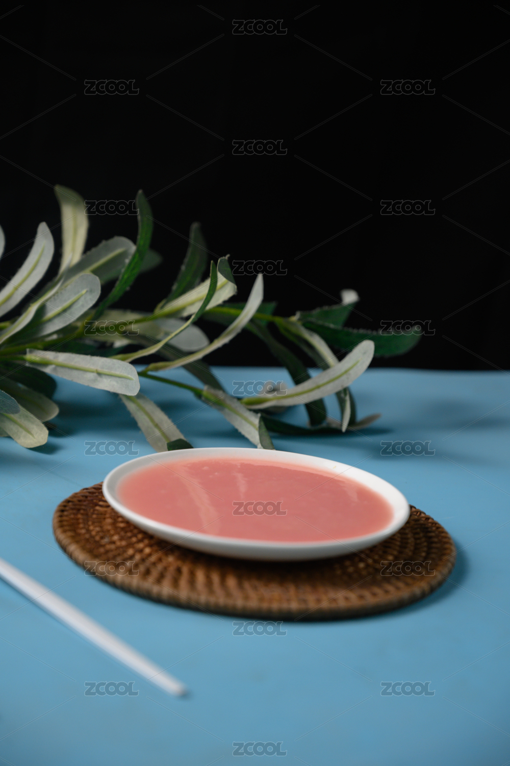 桌面上的盘子里的美味可口的浓缩芭乐汁