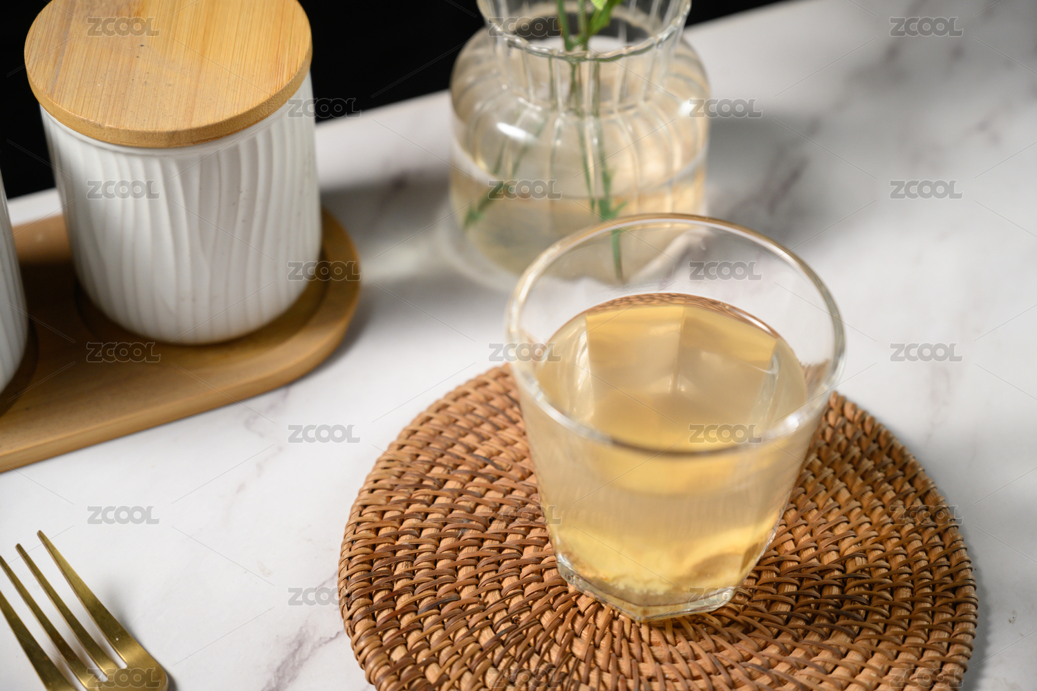 桌面上的杯子里的甘甜可口的天冬茶