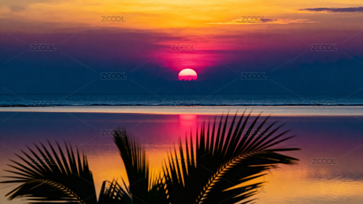 黄昏,日落,日出,红色,椰树,早晨,宁静,自然,图像,棕榈树