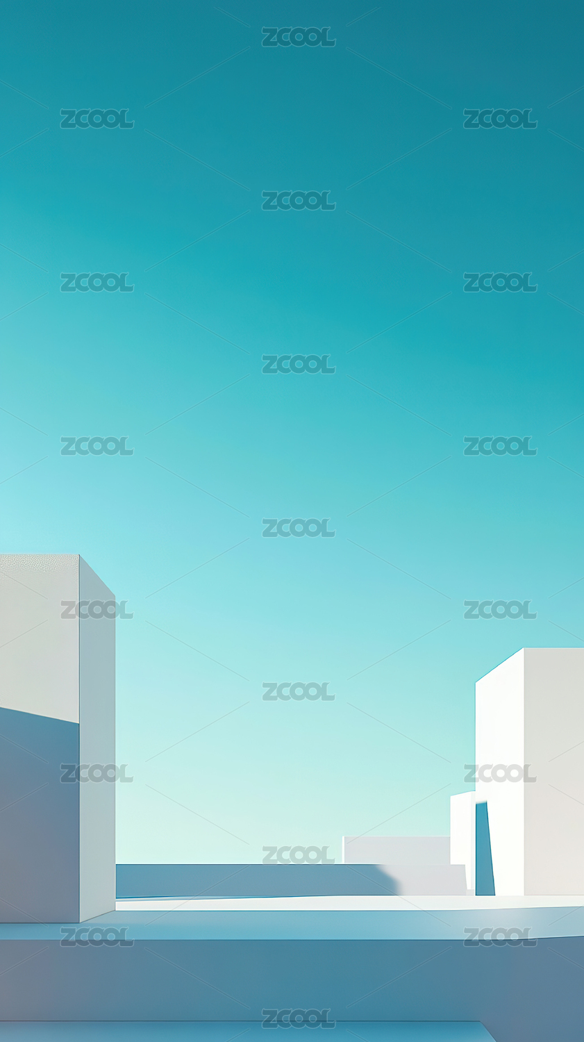 清新高层建筑楼顶的游泳池3D卡通立体插画