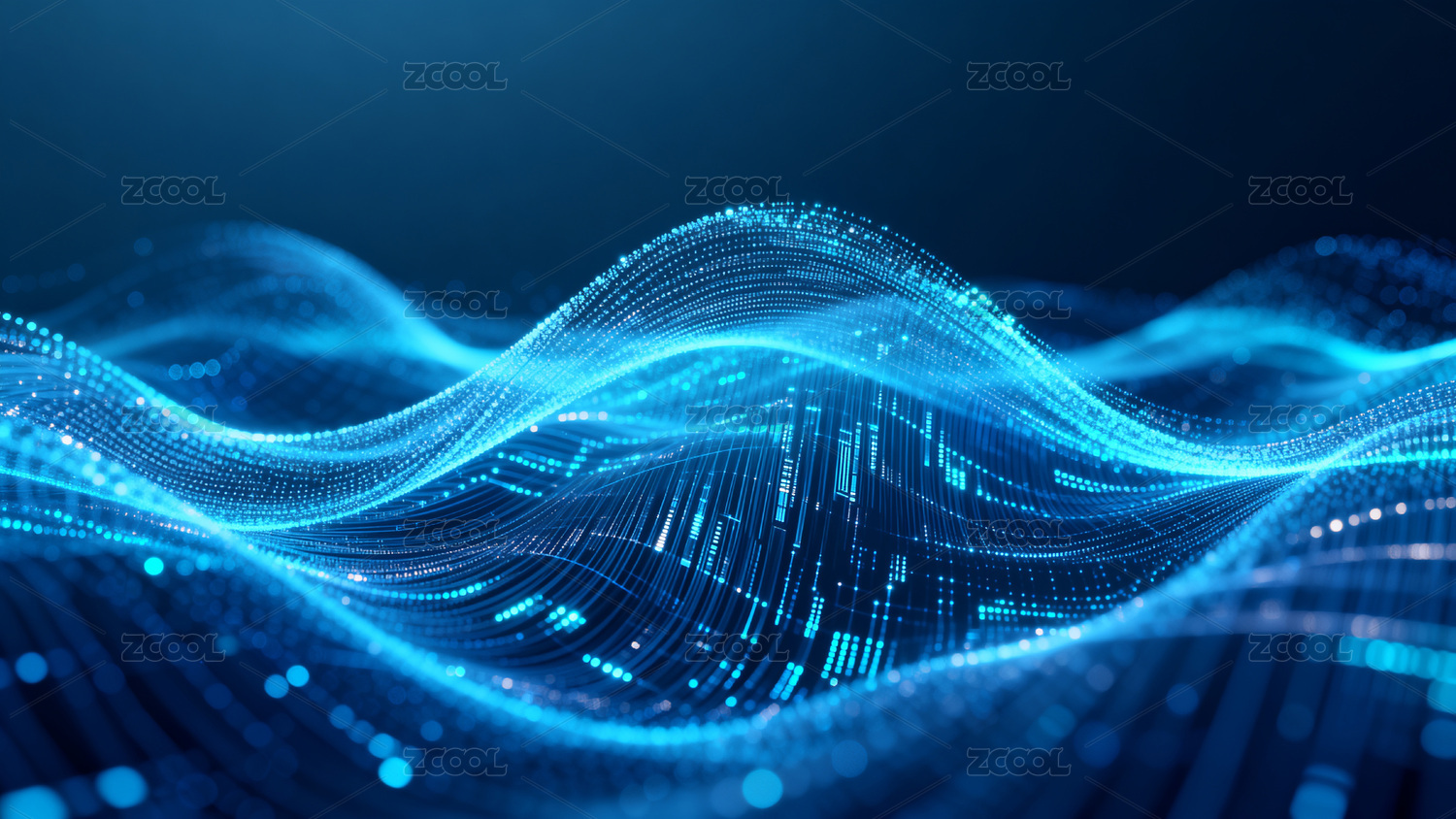 蓝色波浪形数字光效背景