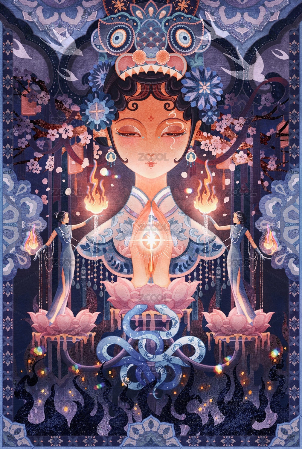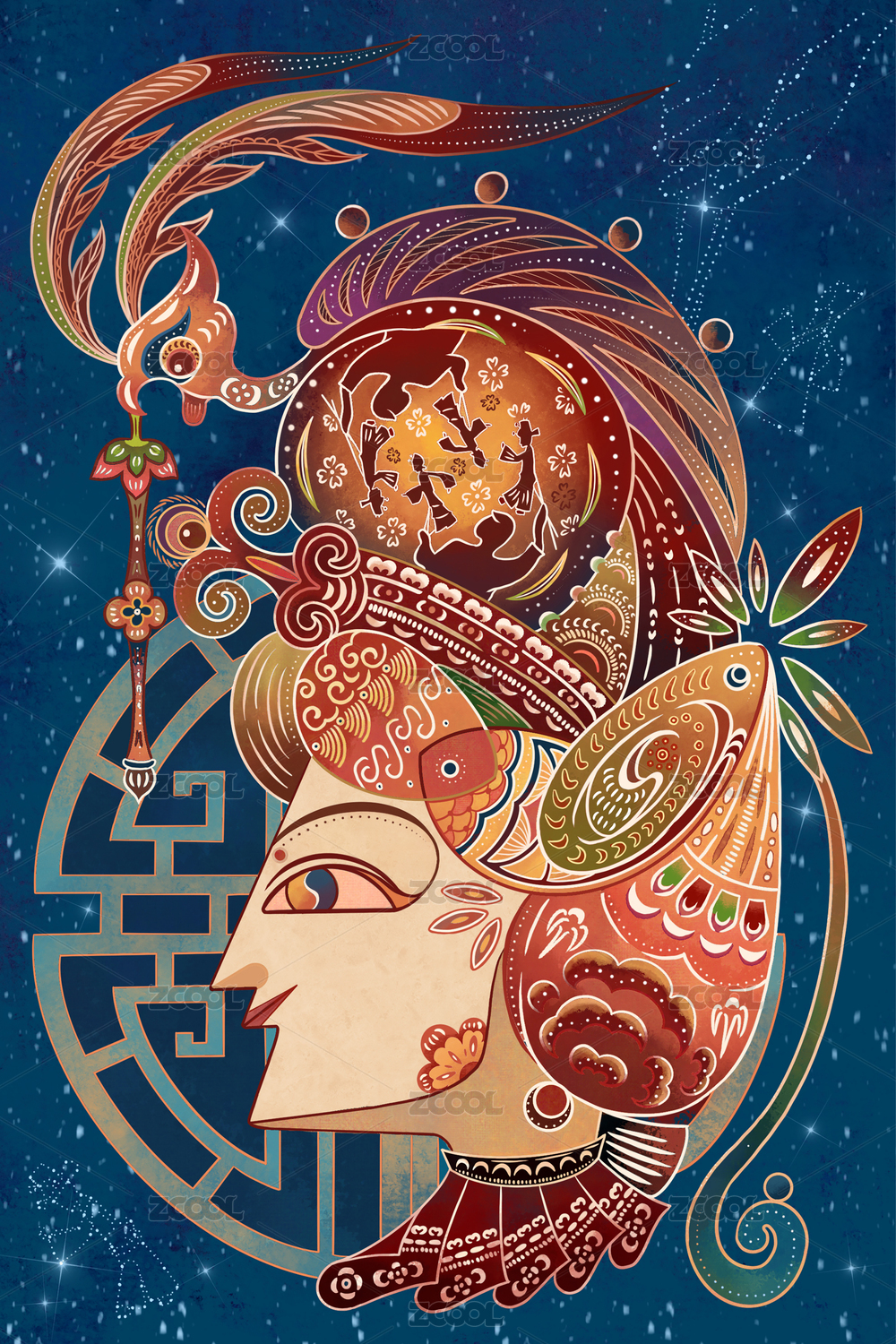 卡通二次元星座花神雪花孔雀装扮的复古少女