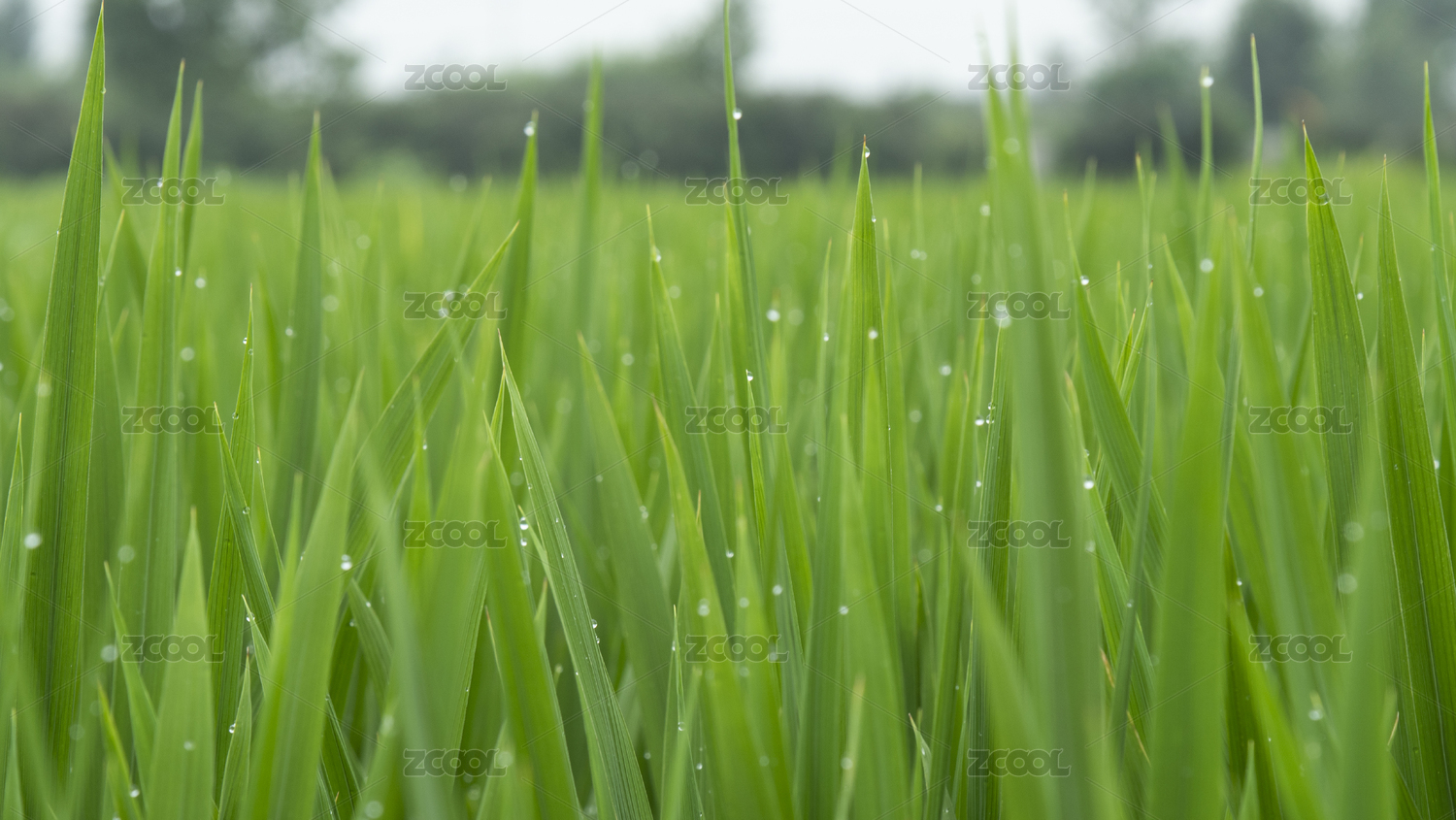 夏日雨后的水稻苗
