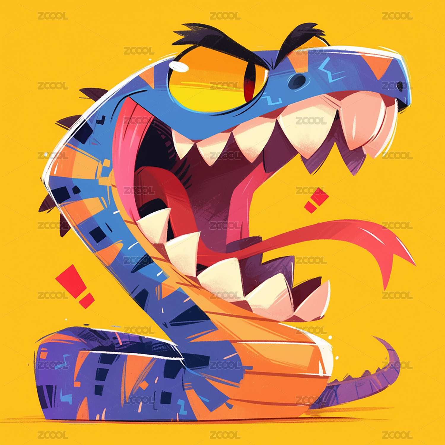 愤怒的蛇2025新年配图蛇年大嘴风格化