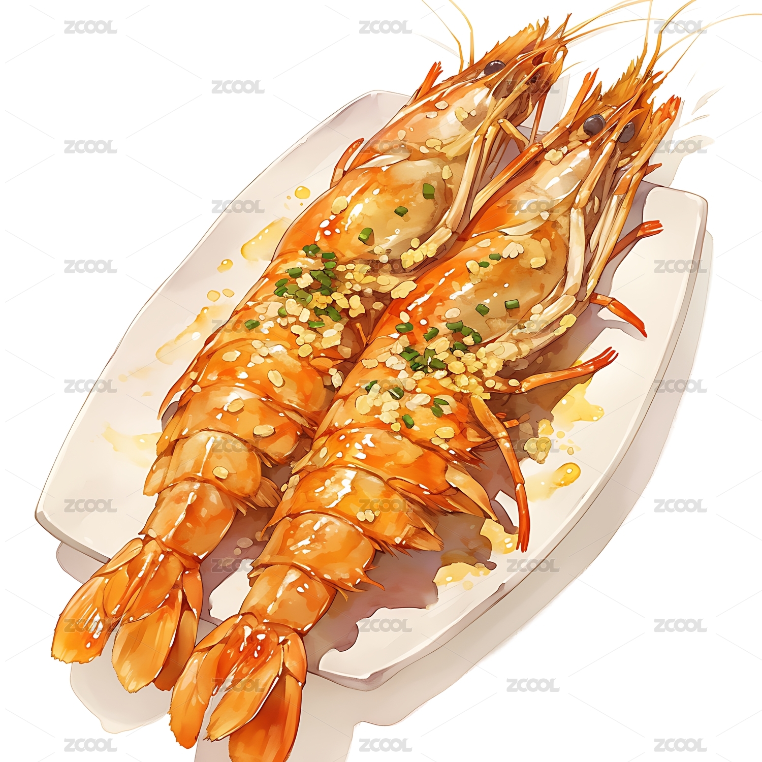 插画,绘画,食物,美食,食品,饮食,虾,元素,小龙虾,白色背景