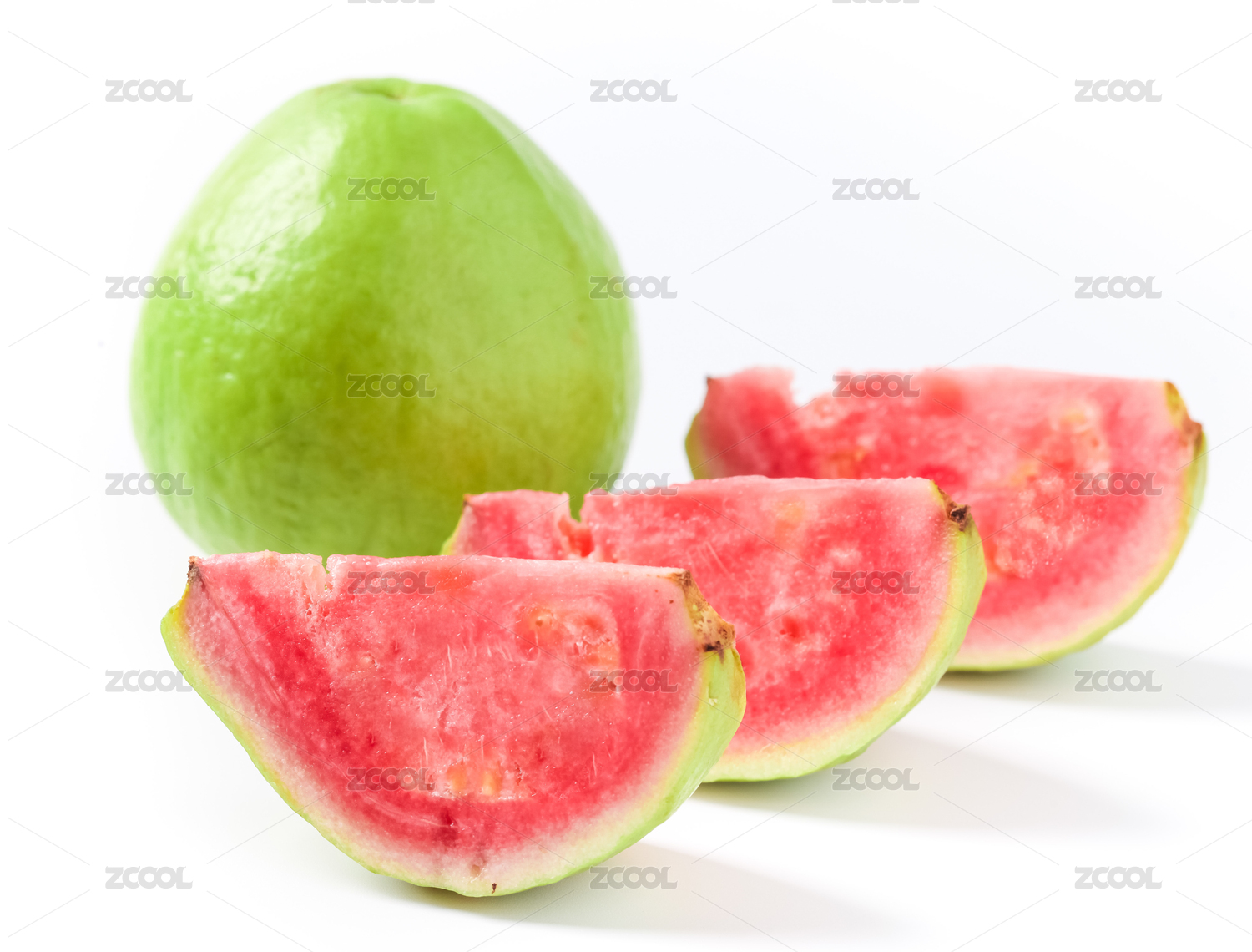 白底上放着红心芭乐和红心芭乐果肉玟理