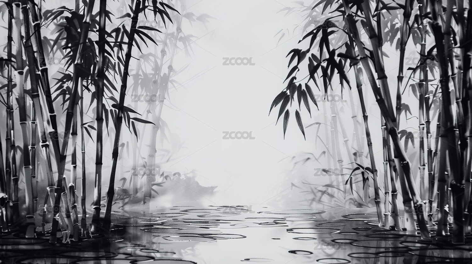 水彩风格竹林意境图