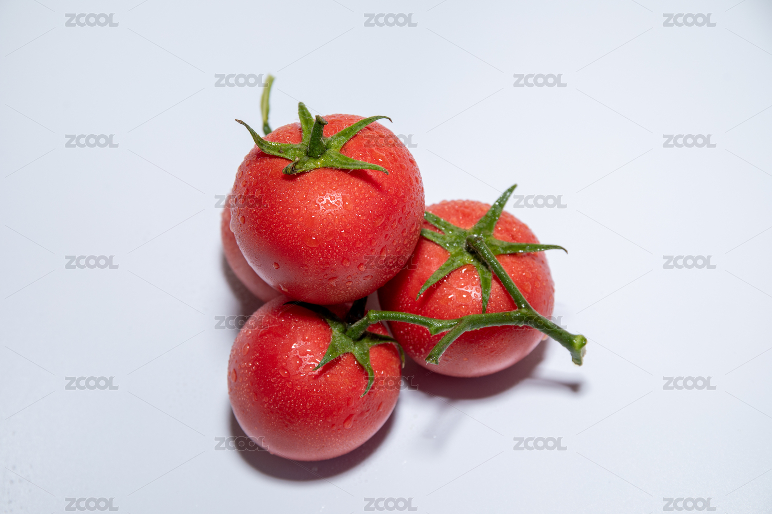 白色背影中放着一串新鲜的西红柿