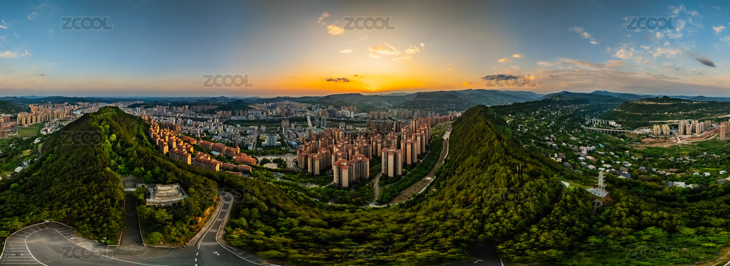 中国四川省巴中市黄昏望王山城区高楼建筑