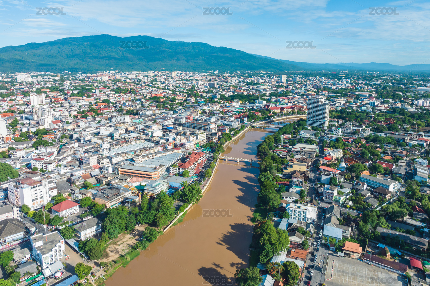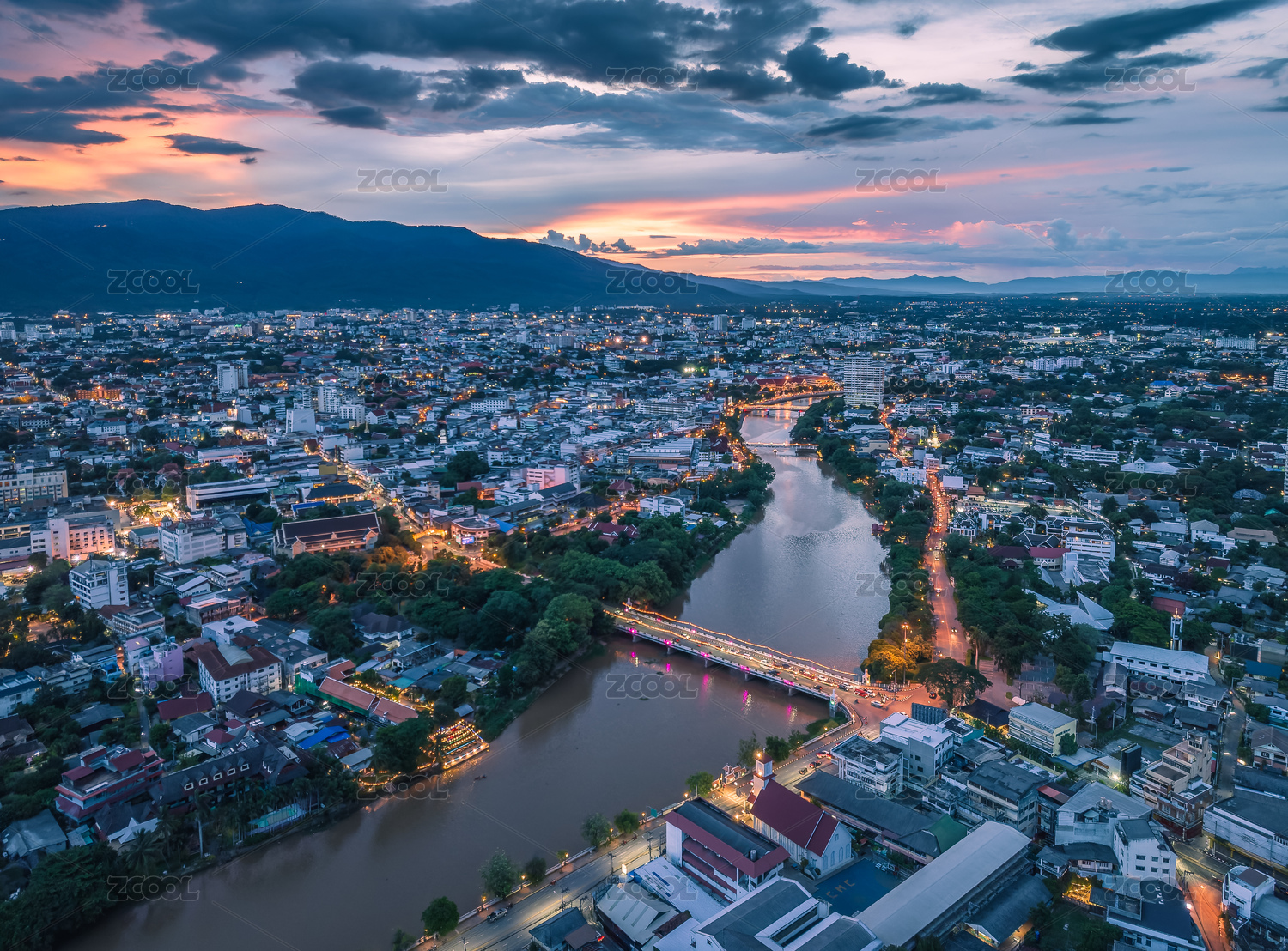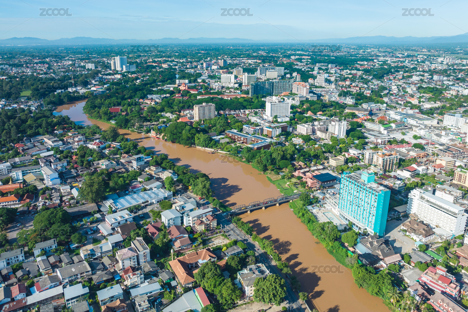 航拍,泰国,清迈,湄平河,新城,城市,建筑,风光,房屋,酒店