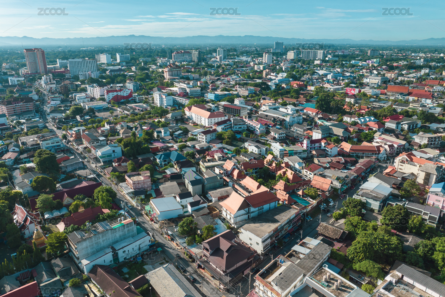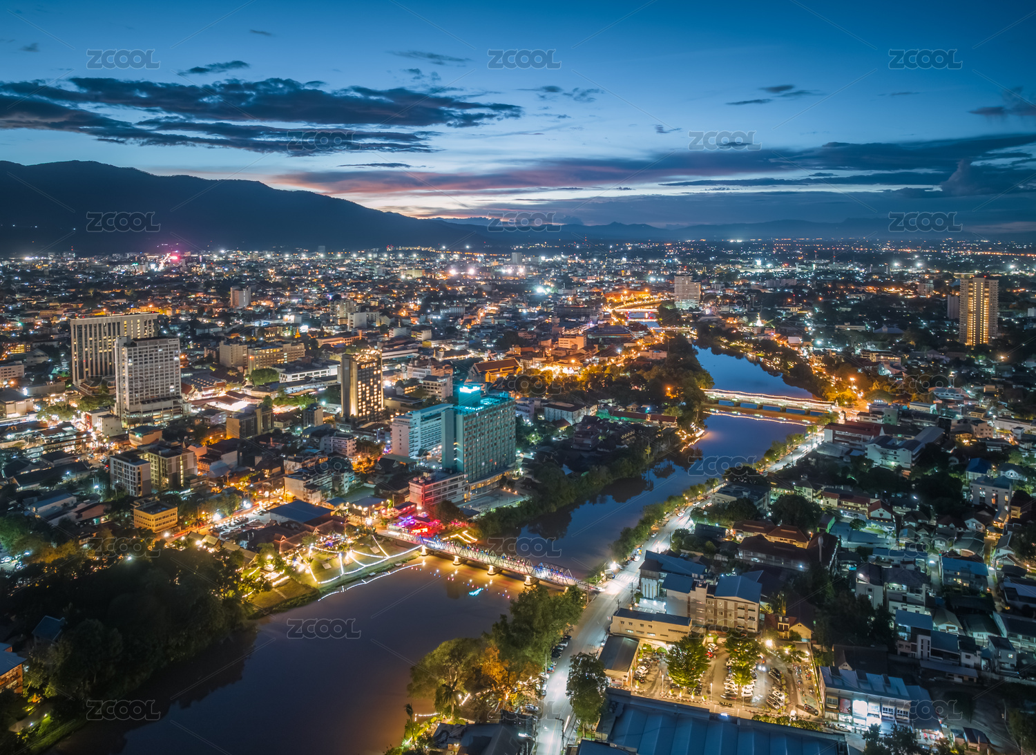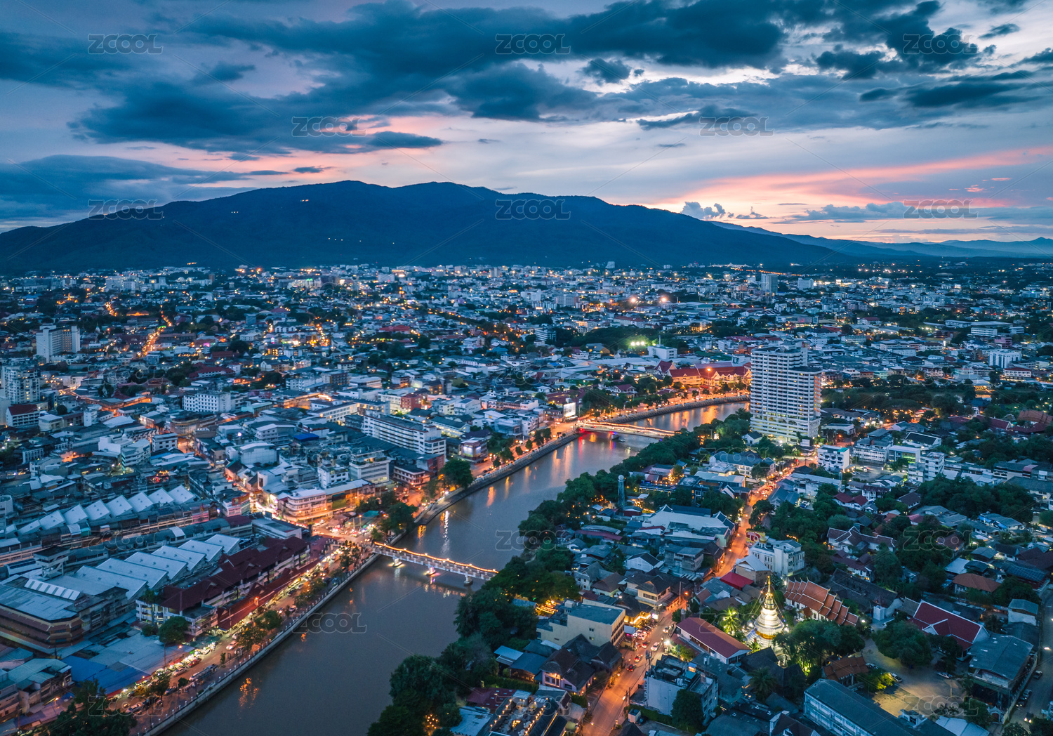 航拍,泰国,清迈,湄平河,新城,城市,建筑,风光,房屋,酒店