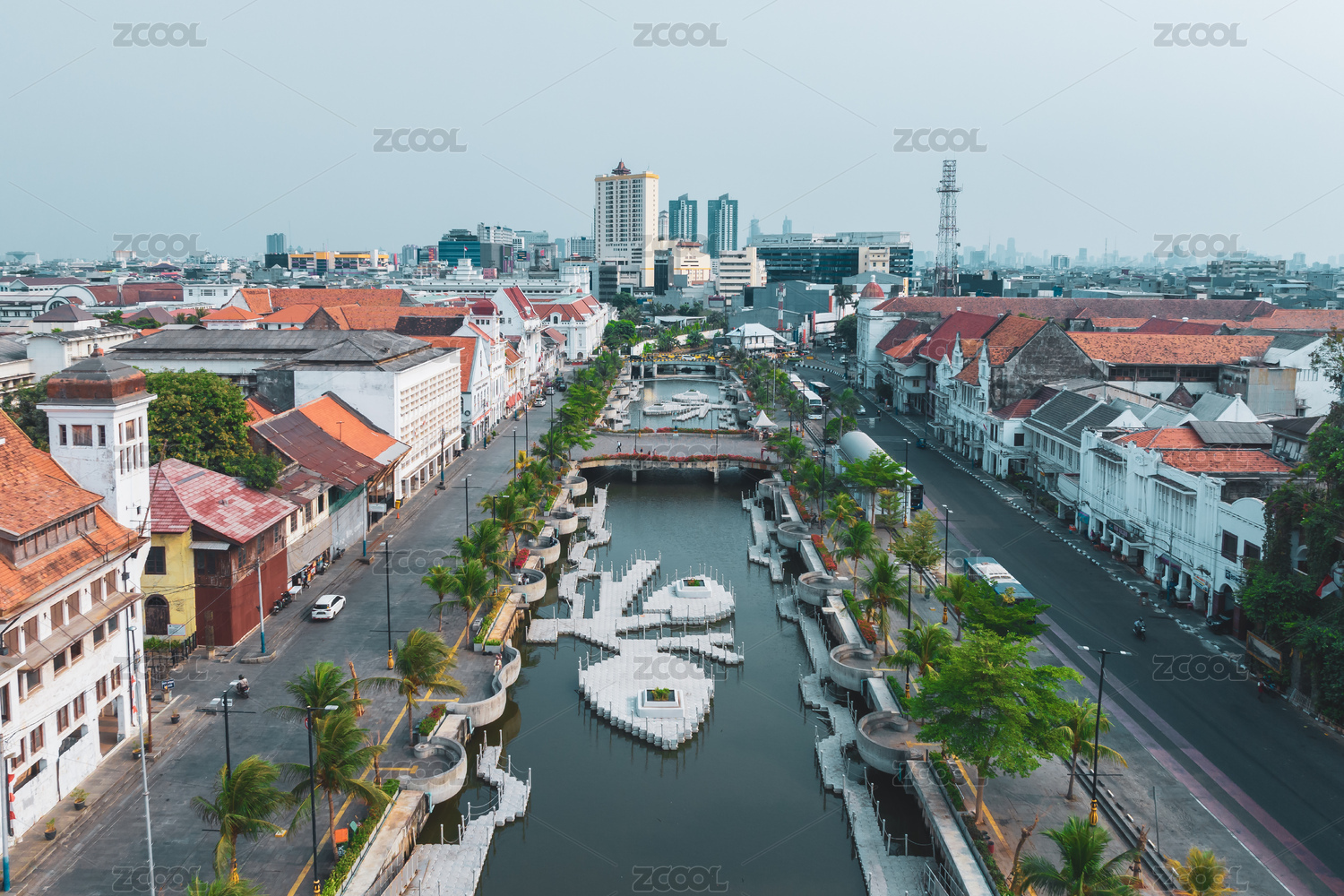 印尼雅加达老城巴达维亚运河城市风光航拍