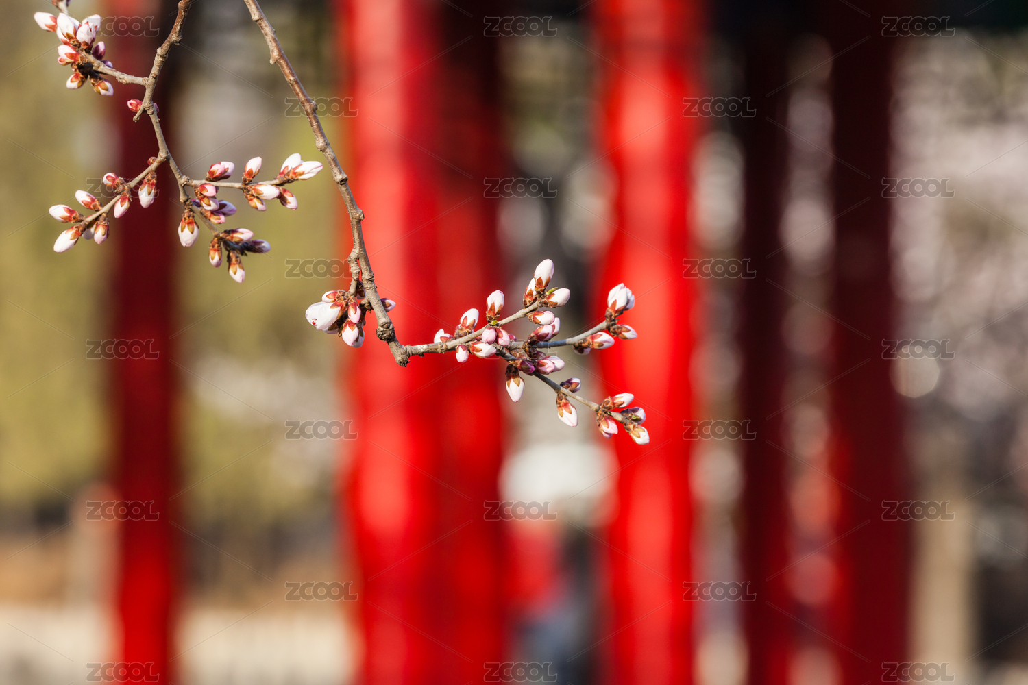 春天一枝桃花开在古建筑门前