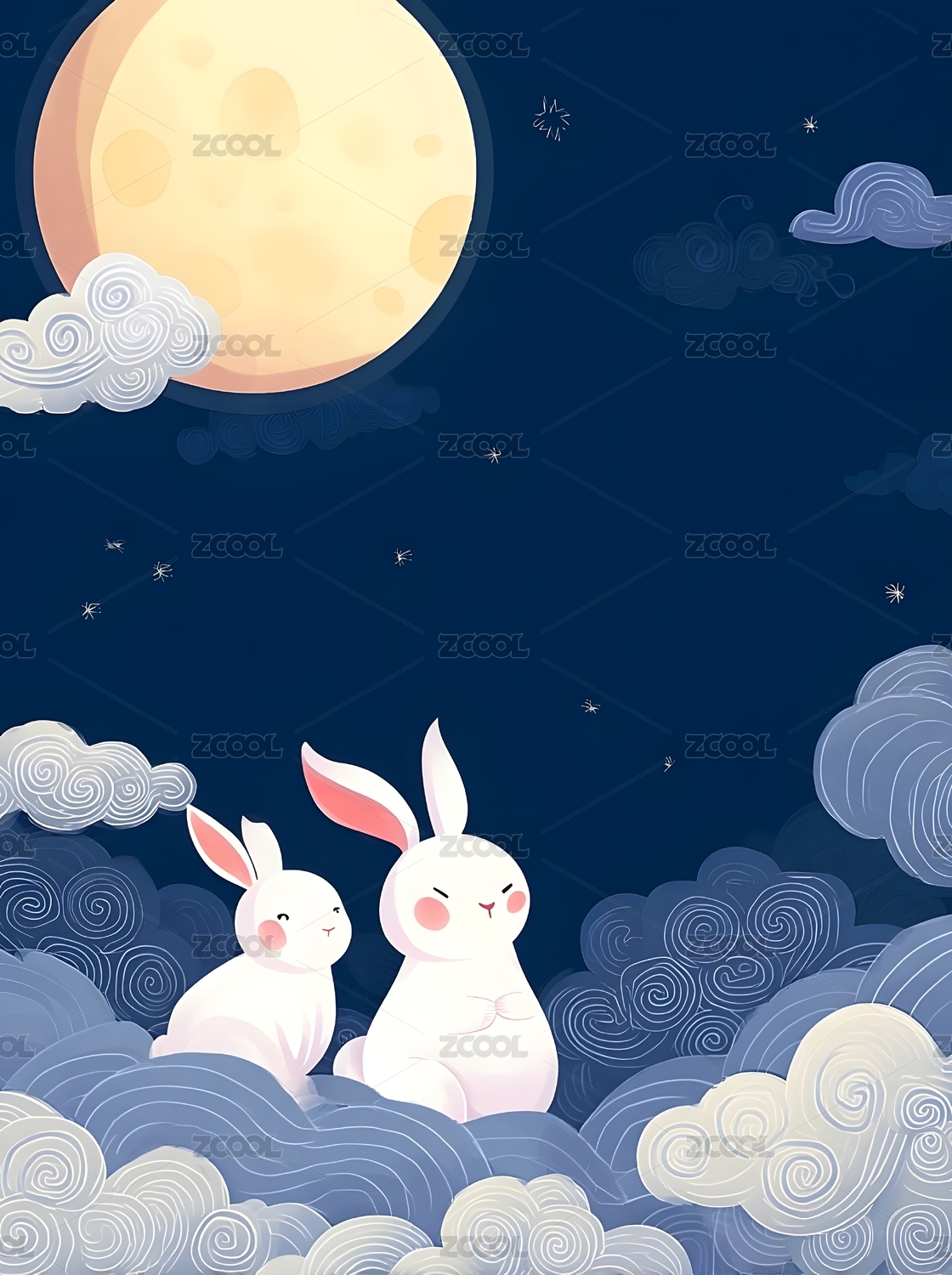 月夜云间双兔伴,浪漫国风意境浓