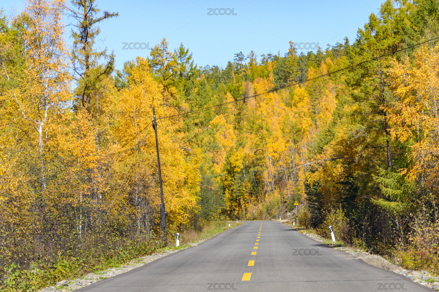中国内蒙古兴安盟地区秋季森林和道路景观