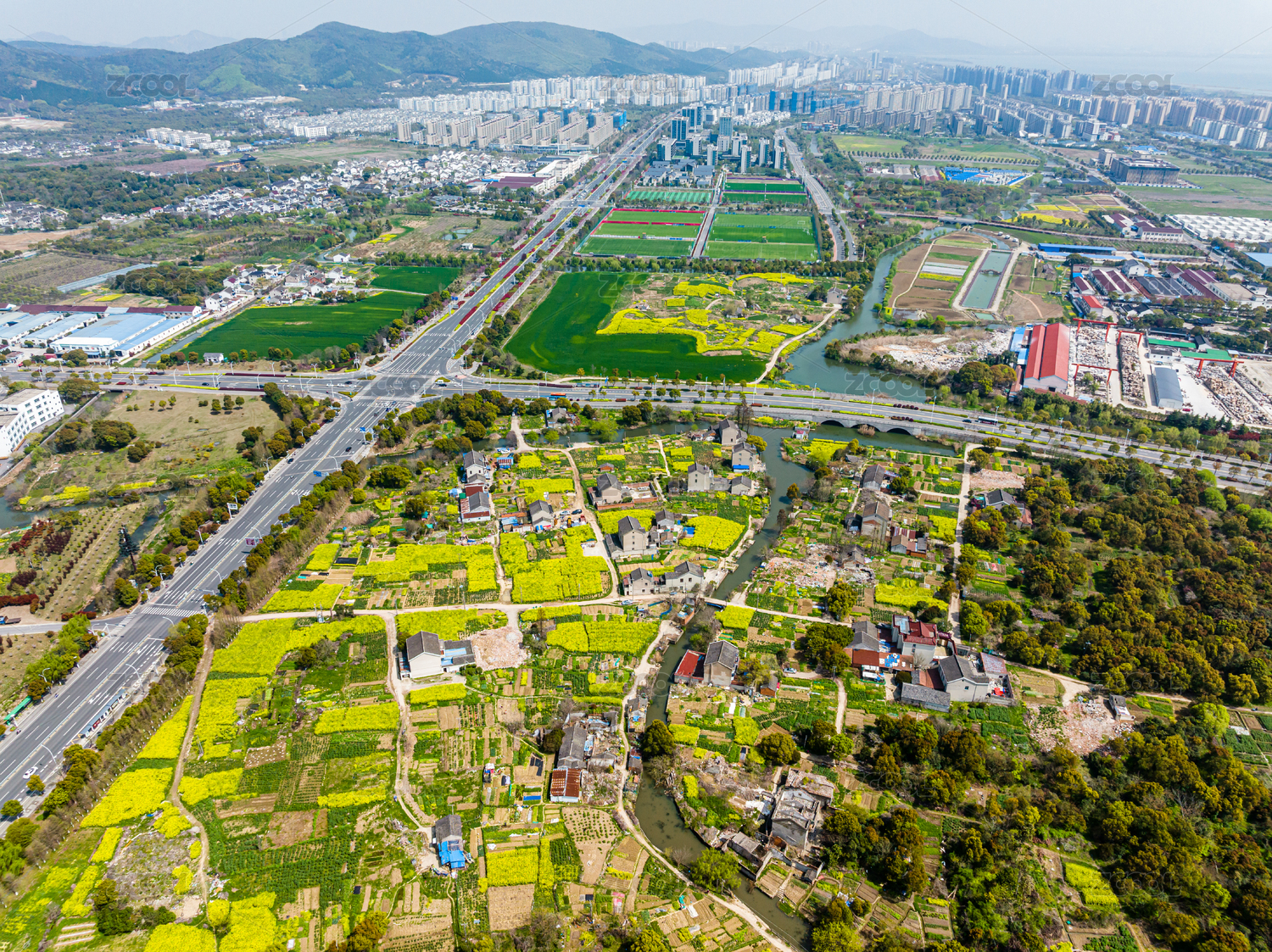 中国,浙江,宁波,乡村,风景,航拍,民居,建筑,水利,农田