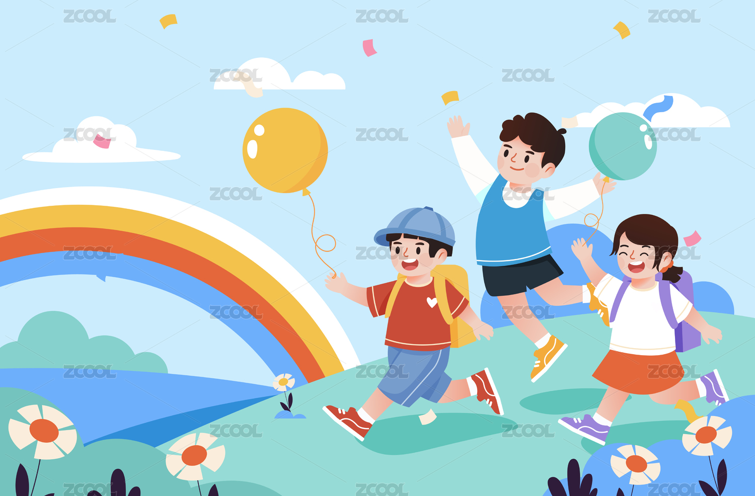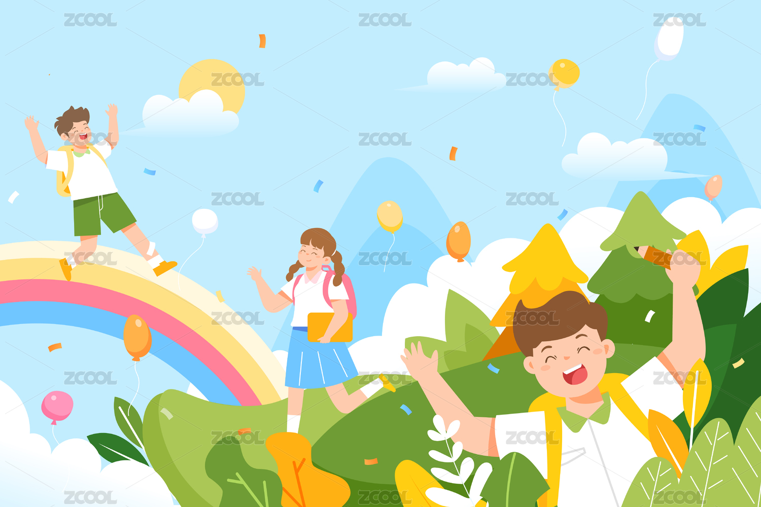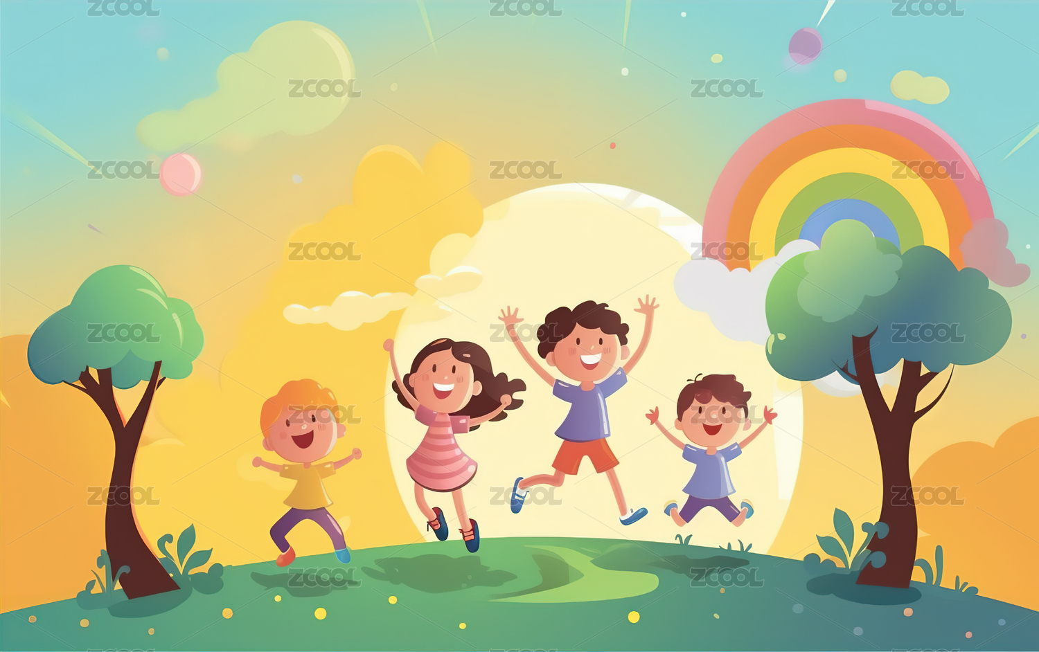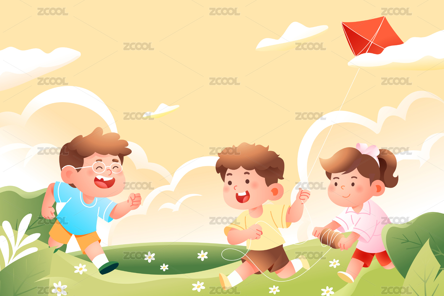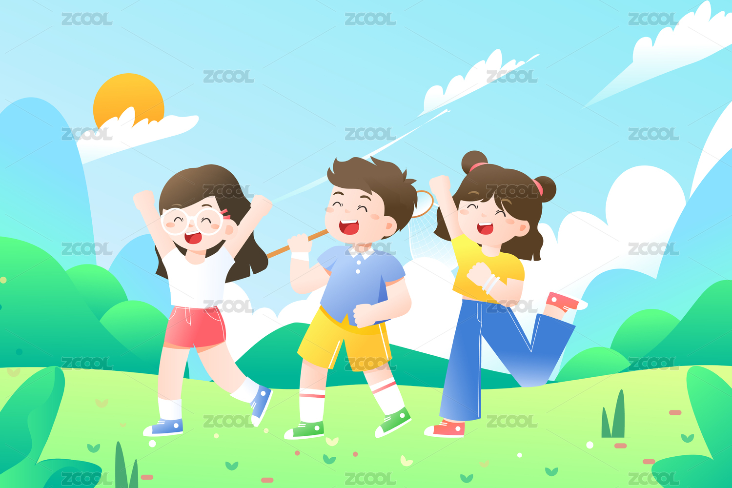童年,插画,矢量,可爱的,自然,卡通,背景,夏天,海报,儿童节
