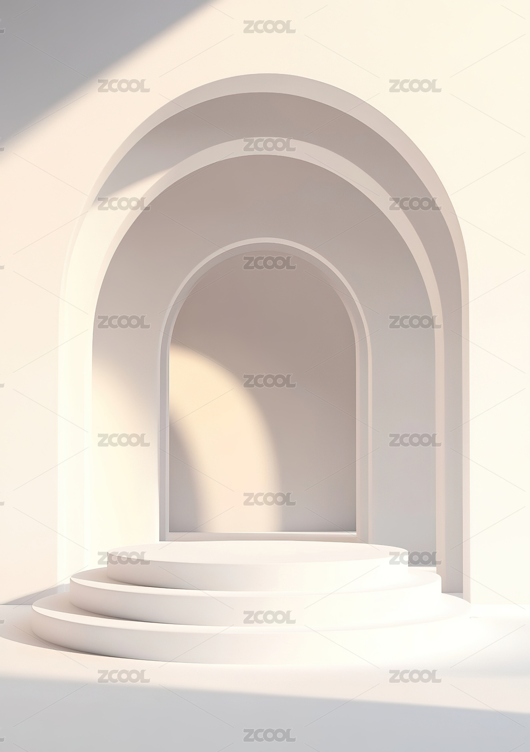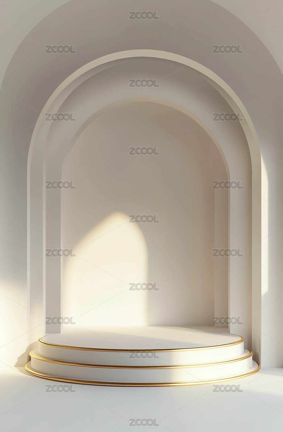 3D米色柔和光影几何空间电商产品展台