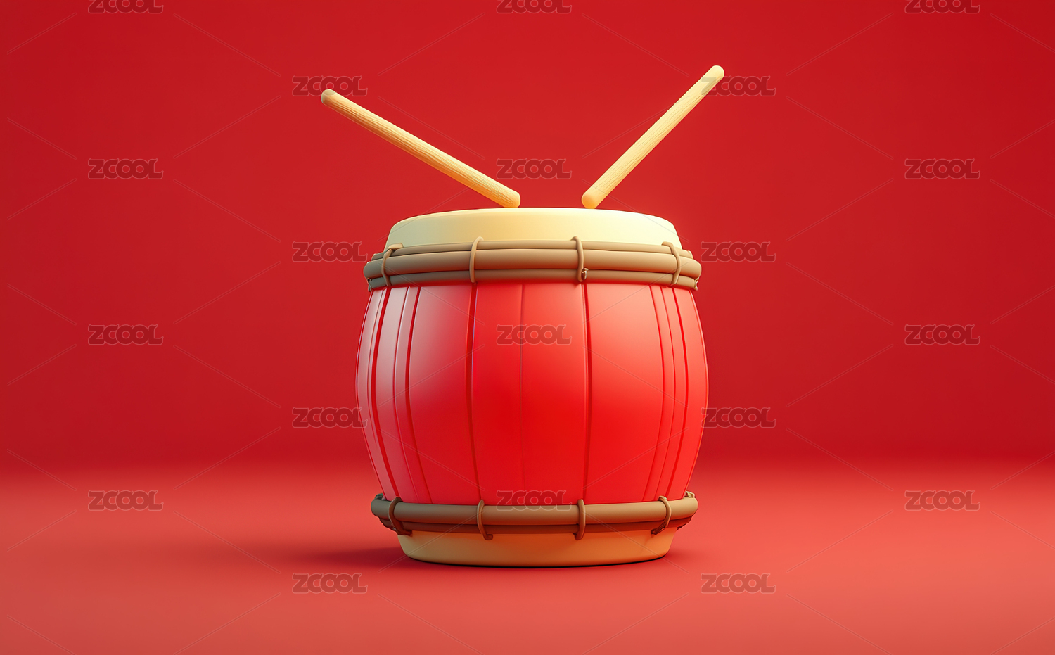 红色卡通锣鼓场景3D渲染