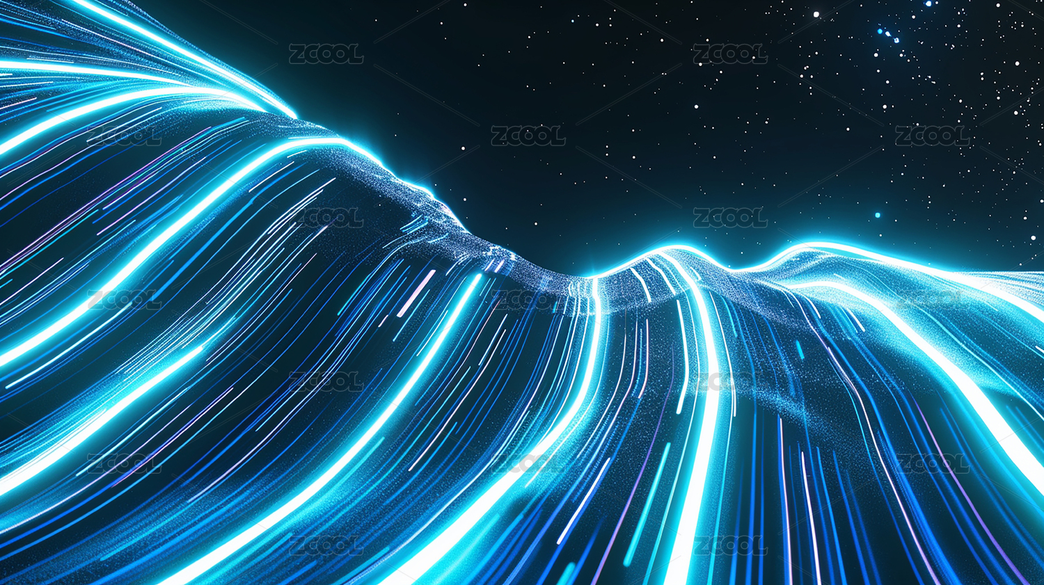 3D,抽象,插画,曲线,现代,背景,技术,网络,发光,光斑