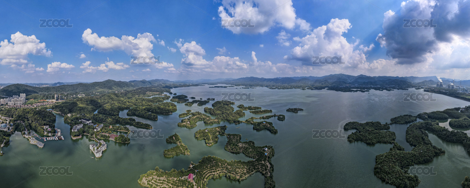 中国湖北咸宁赤壁陆水湖4A景区全景图航拍
