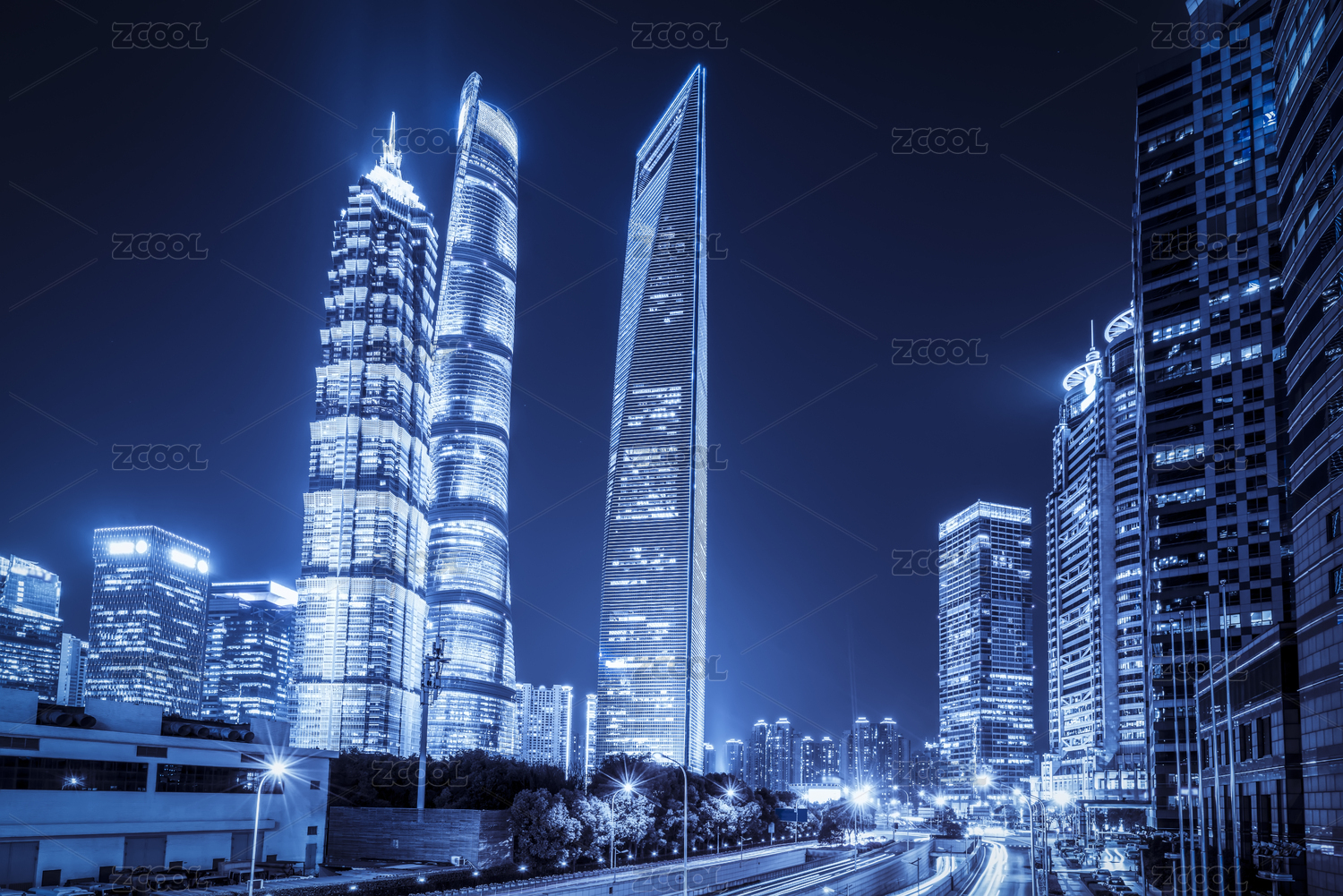 上海陆家嘴城市之夜的运动速度效果