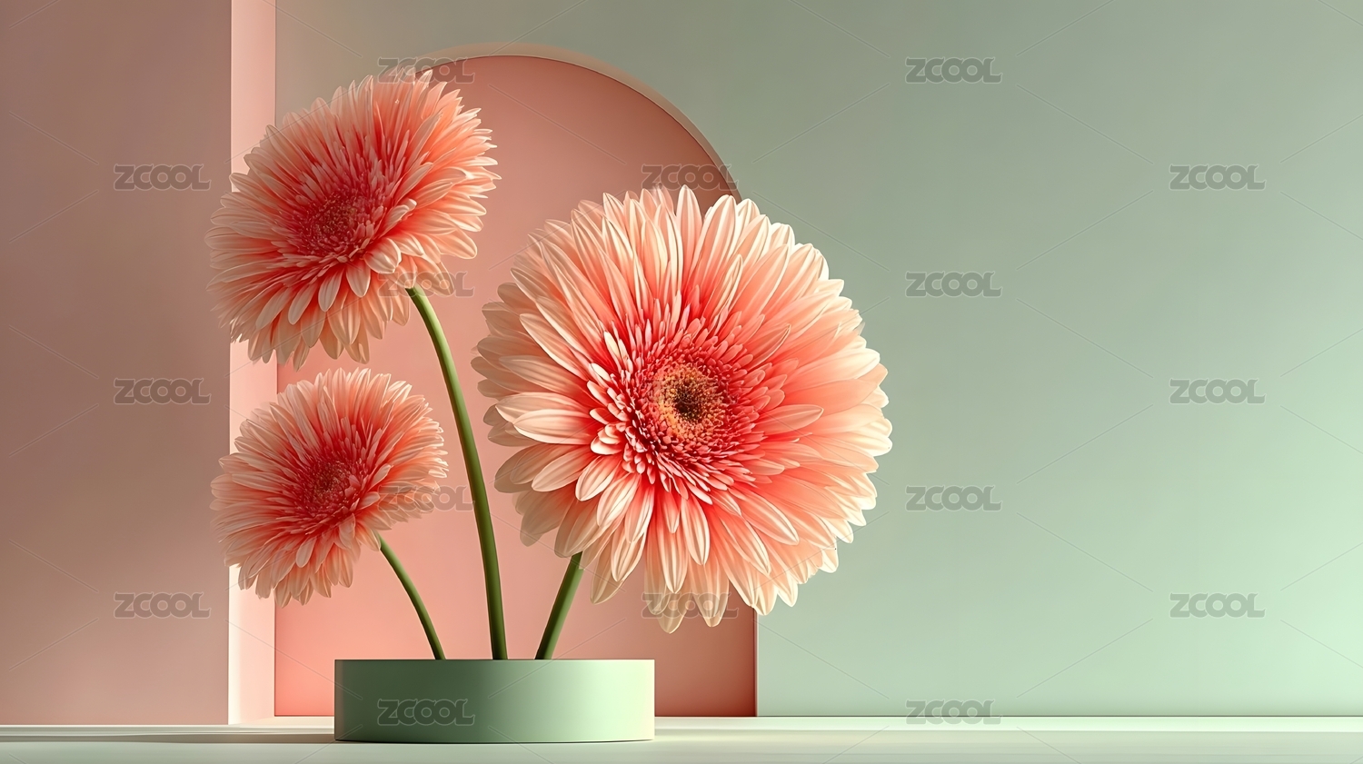 简约白色讲台非洲菊场景