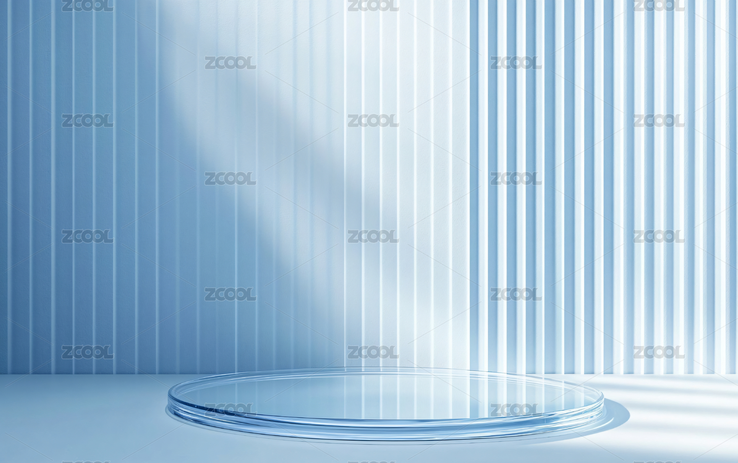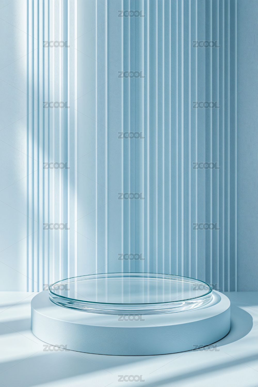 简约白色圆形展台与竖条光影背景