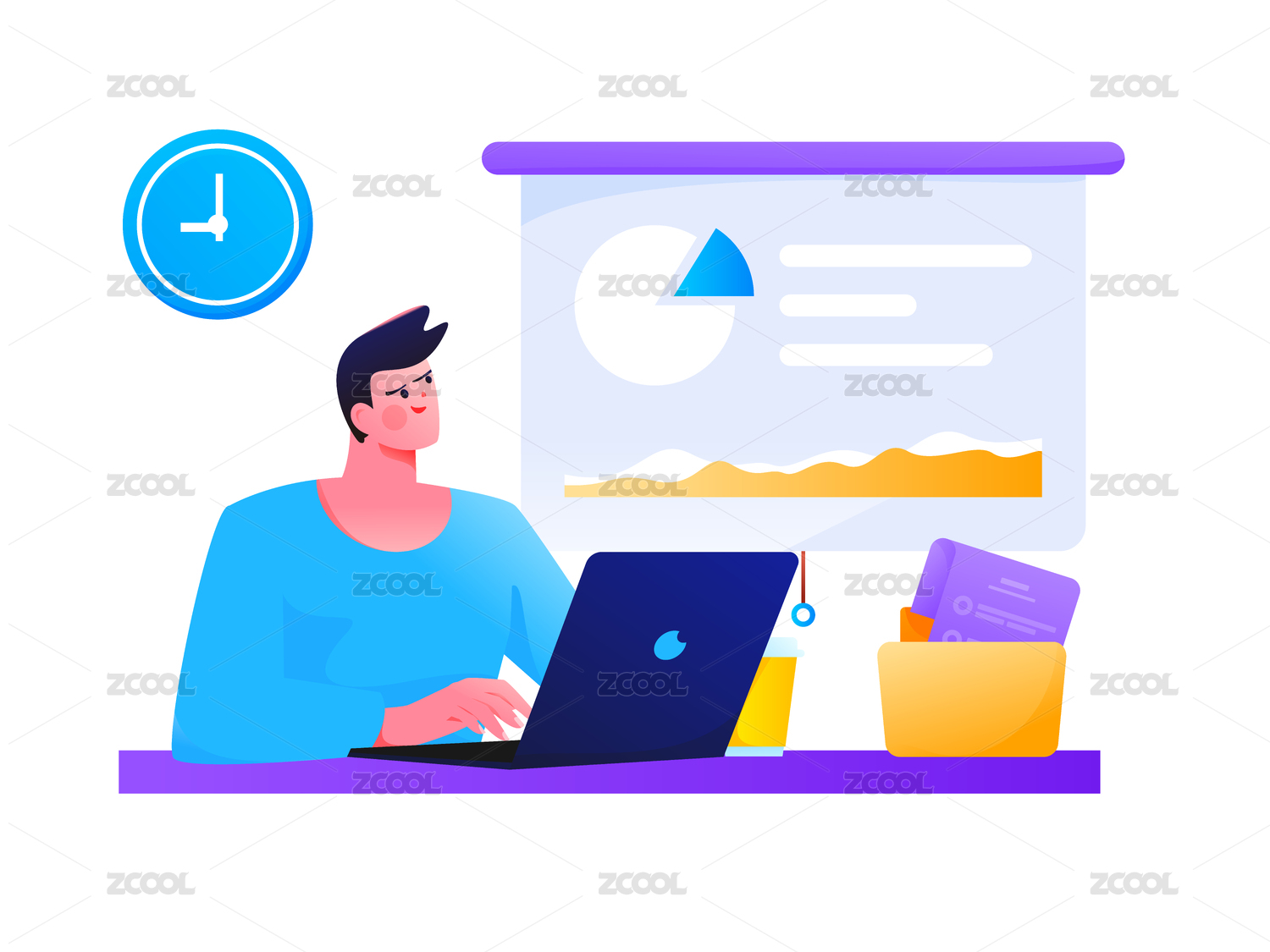 站着工作的男士,扁平矢量人物场景创意概念插画