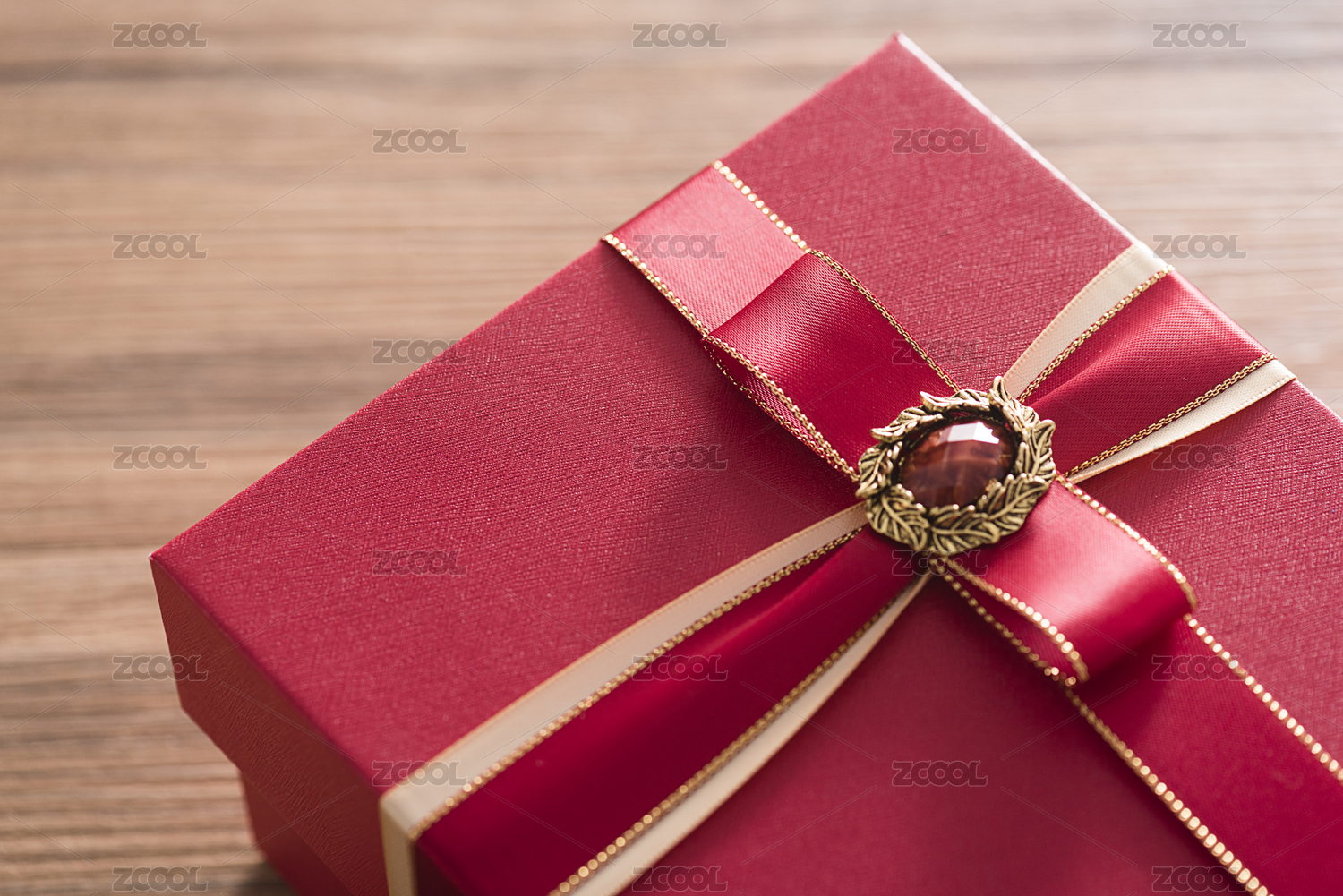 一个礼物盒在木纹背景上